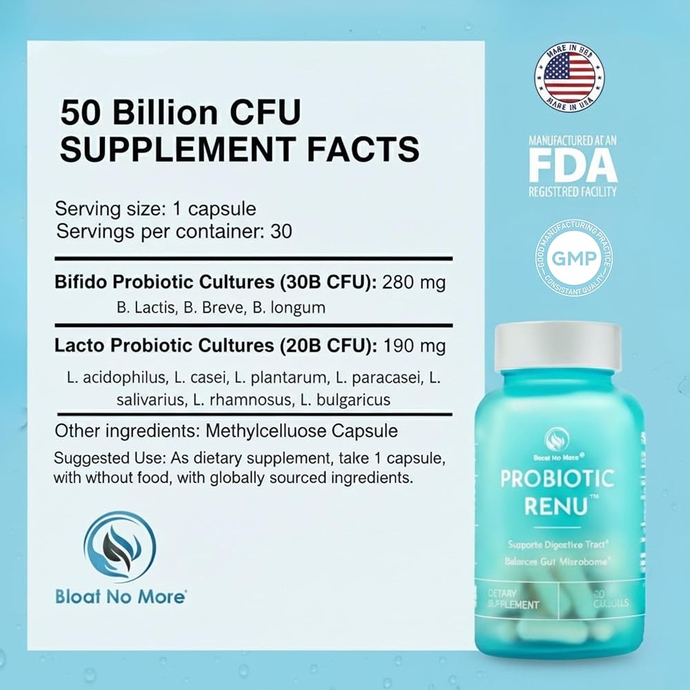 لا مزيد من البروبيوتيك 50 مليار وحدة تشكيل مستعمرة للنساء والرجال - مكمل يومي لدعم صحة الأمعاء والجهاز الهضمي، يساعد على دعم المناعة - بروبيوتيك رينو، 30 قطعة