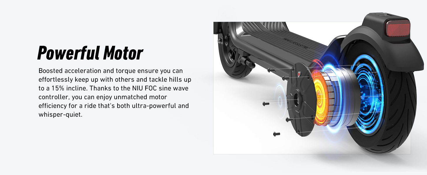 【أداء قوي وفعال 】 يتميز NIU 100P بمحرك قوي بقدرة 300 واط، مما يوفر سرعة قصوى تبلغ 17.4 ميل في الساعة مع أقصى خرج طاقة يبلغ 600 واط، مما يجعله مثاليًا للتنقلات الحضرية وتسلق التلال بنسبة تصل إلى 15%. يضمن نطاق 18 ميلًا إمكانية تغطية مسافات أطول بشحنة واحدة.