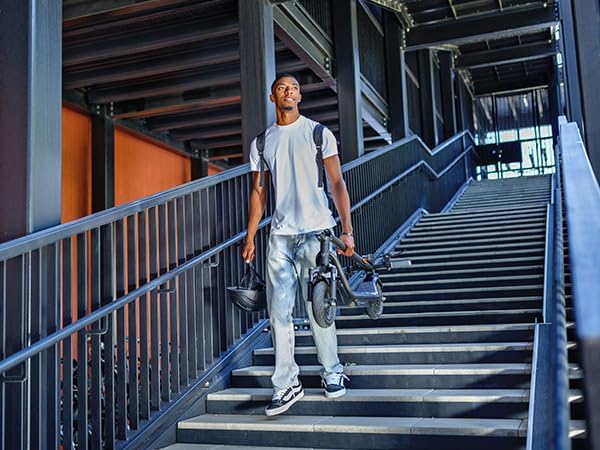 【راحة معززة أثناء الركوب】 يأتي 100P مزودًا بإطارات أنبوبية هوائية مقاس 9.5 بوصة توفر قيادة سلسة ومستقرة، وتمتص الصدمات بشكل فعال على التضاريس غير المستوية. يزن هذا السكوتر 38.1 رطلًا فقط، وهو خفيف الوزن ولكنه متين، ويدعم الدراجين حتى وزن 265 رطلاً.