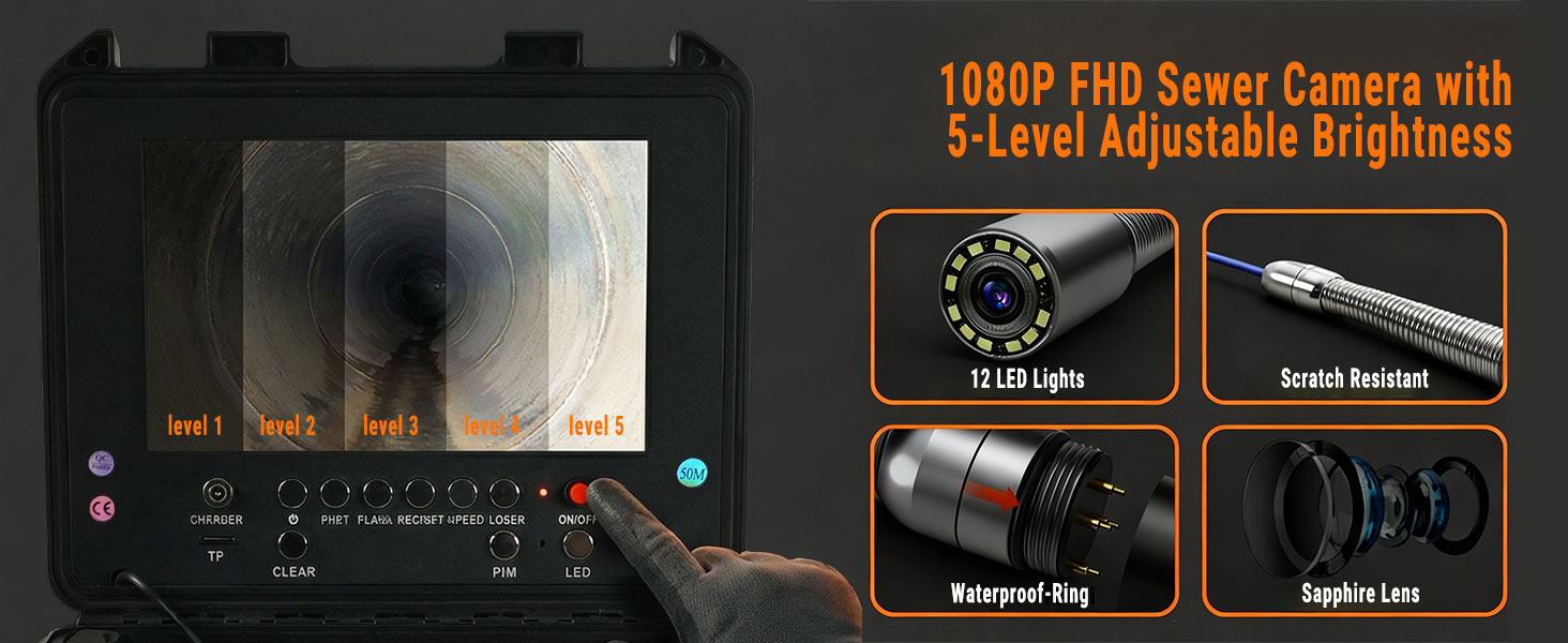 [مصممة لتدوم طويلاً] تم تصميم هذه الكاميرا لتتحمل أصعب المهام، وتتميز بعدسة ياقوتية مقاومة للخدش وتصنيف IP68 المقاوم للماء، مما يضمن قدرتها على التعامل مع التأثيرات القاسية ودرجات الحرارة القصوى (من -4 درجة فهرنهايت إلى 140 درجة فهرنهايت) داخل الأنابيب دون فقدان أي شيء. يتنقل كابل الألياف الزجاجية المرن الملفوف بزنبرك وكابل الألياف الزجاجية شبه الصلبة بسلاسة في الانحناءات الضيقة دون الالتواء أو التشابك، مما يقلل من التآكل للحصول على أداء طويل الأمد.