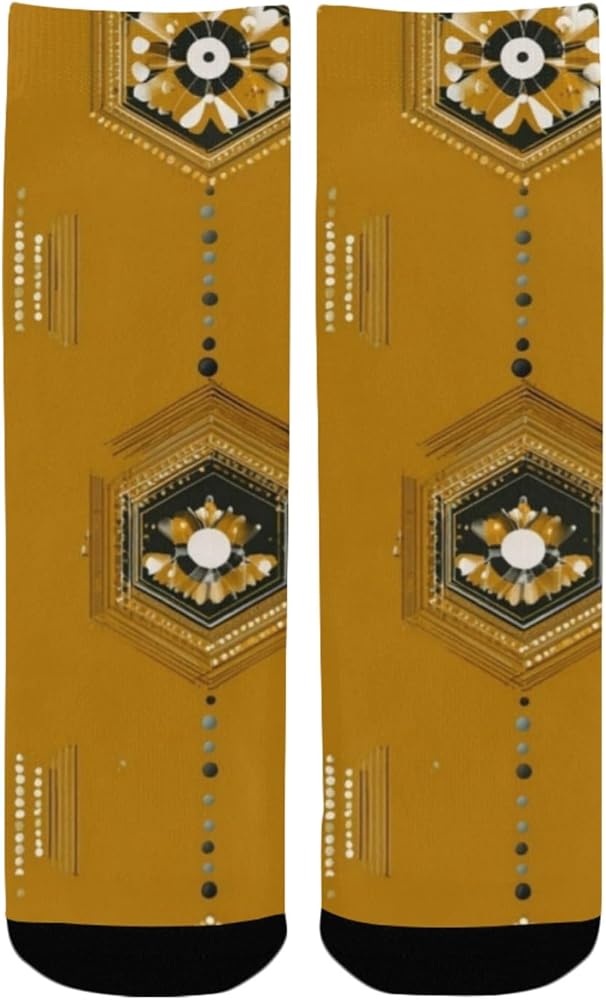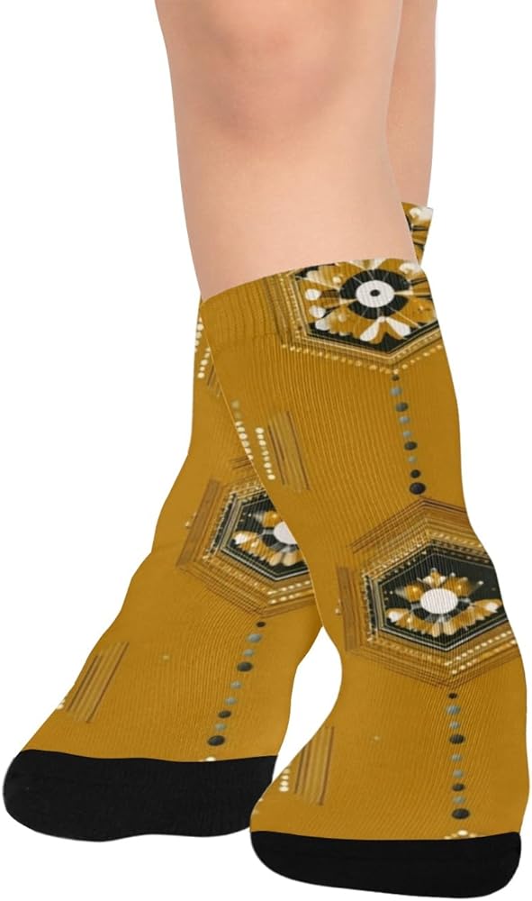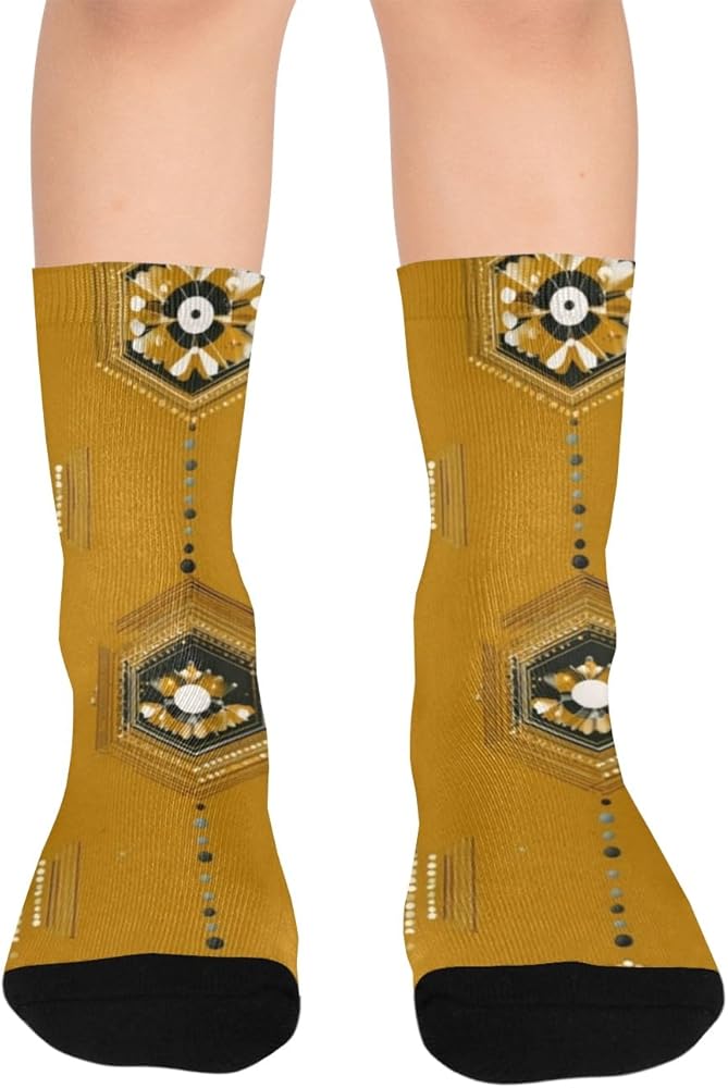 جوارب المشي لمسافات طويلة بطبعة سداسية ذهبية - جوارب شتوية حرارية سميكة دافئة للأطفال الصغار للأولاد والبنات للمدرسة، والارتداء اليومي والأنشطة الخارجية