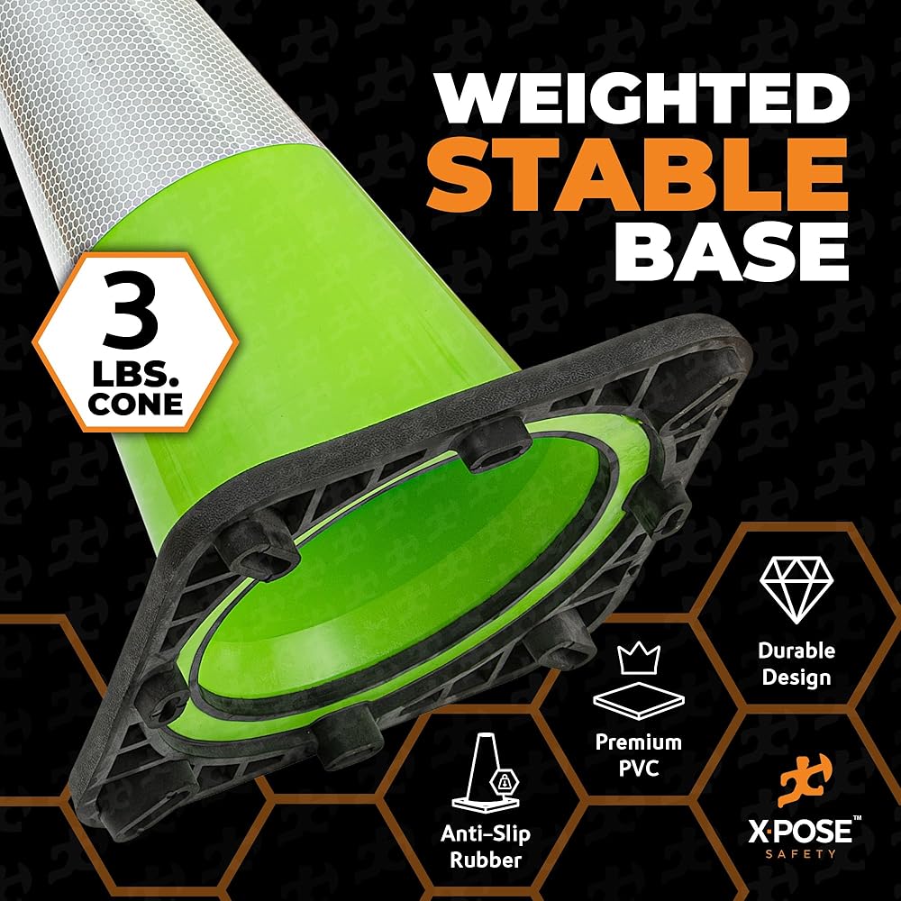 شديدة التحمل: مخاريط السلامة المرورية ذات اللون الأخضر الليموني Xpose Safety قوية بحيث يمكنك الاعتماد عليها حتى لا تسقط. أنشئ حاجزًا أو حدد منطقة بمساعدة هذه المخاريط الخضراء الليمونية ذات الألوان الزاهية. تبقى مخاريطنا الموزونة ثابتة دون أن تسقط.
