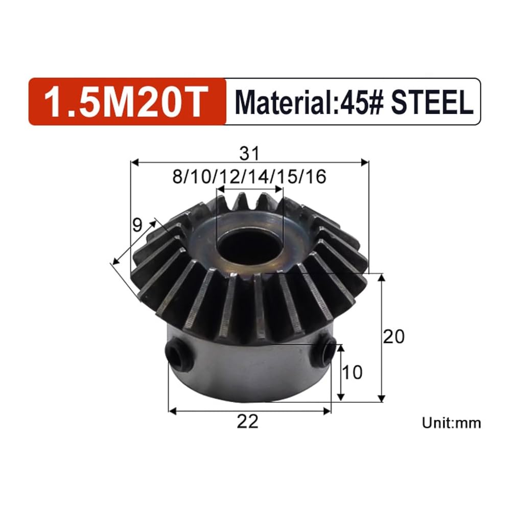 1pc 1.5M 20Teeth Bevel Gear Hole 8/10/12/14/15/16mm