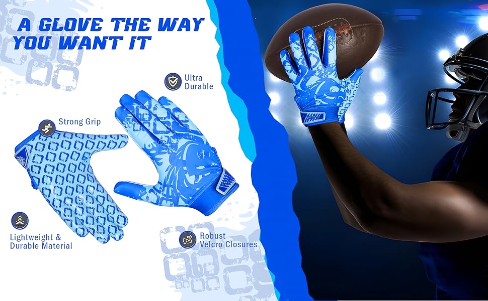 🏈 Multiple Size Options: Available in Adult (S, M, L, XL) and Youth (YL, YXL) sizes to fit every player. Perfect football gloves for training, competition, or casual play.
