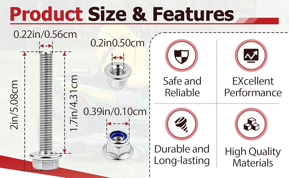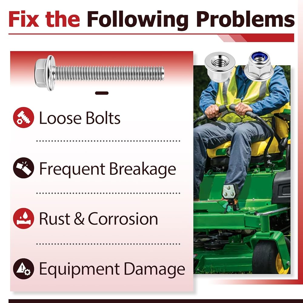 Premium Material: Made of high quality stainless steel, these shear bolts compatible with John Deere offer excellent strength, corrosion resistance and long lasting durability