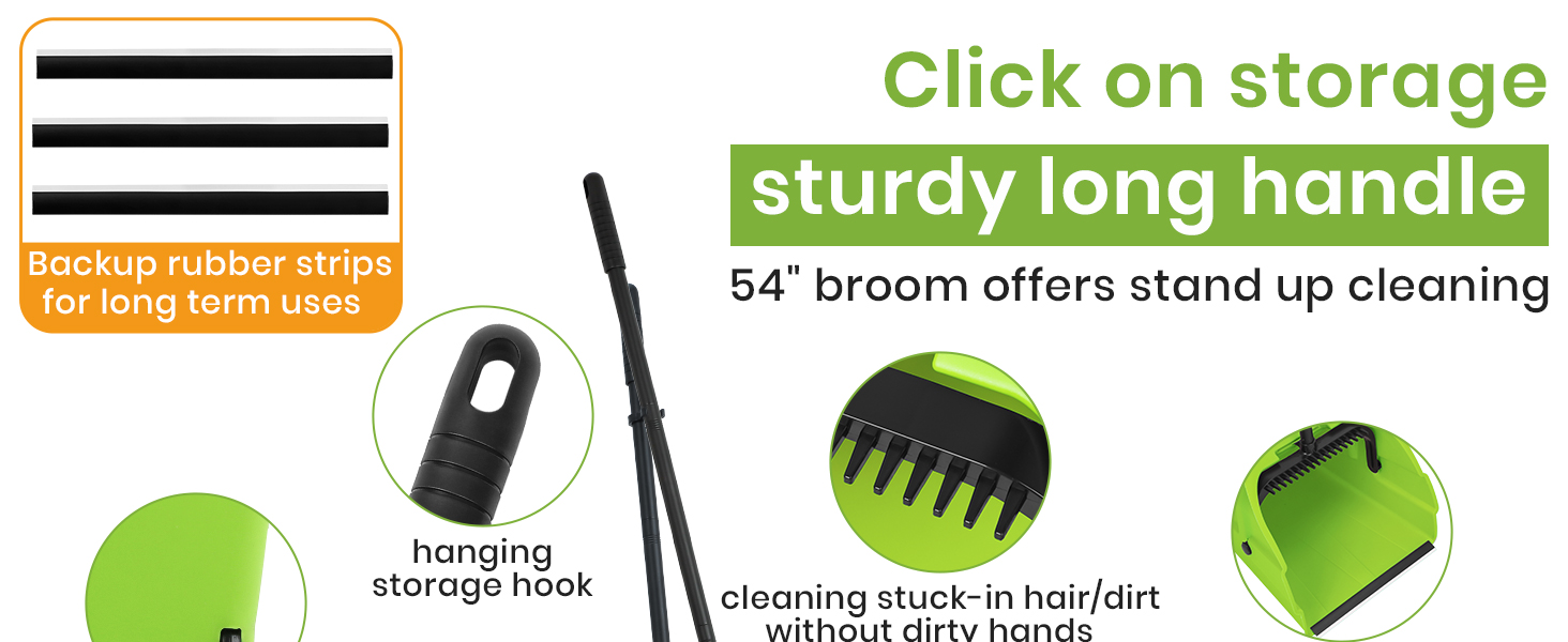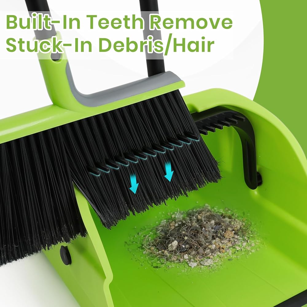 • مكنسة شديدة التحمل - يبلغ عرض رأس المكنسة 35.56 سم مع مقبض طويل 137.16 سم، ولا تحتاج إلى الانحناء أثناء الكنس، مجموعة المكنسة التجارية الكبيرة جدًا ومجارف الغبار تجعل عملية التنظيف أسرع بكثير وأكثر كفاءة. من السهل أن تلتقط الشعيرات ذات العلامات الغبار الناعم والأوساخ