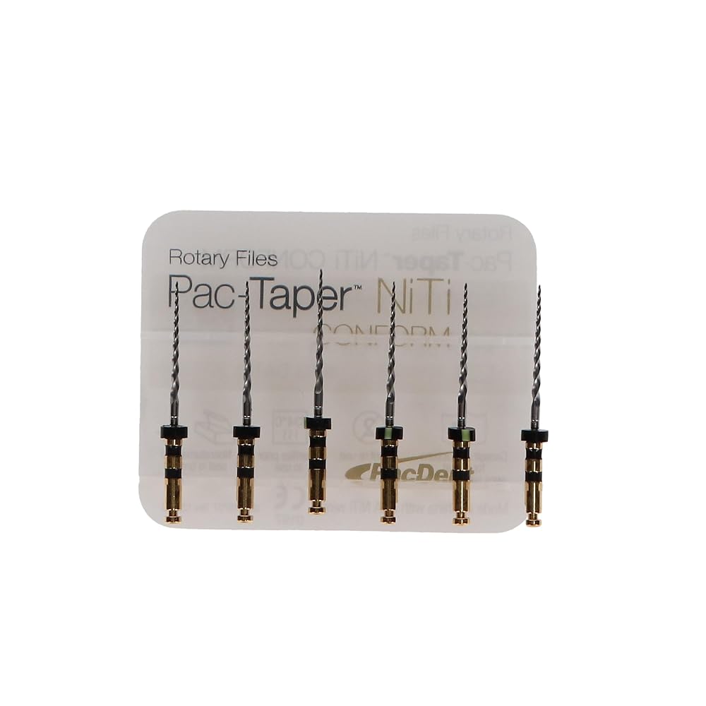 Pac-Taper Conform Nickel-Titanium Rotary File, 21 mm, A4, 6/Pk. Pac-Taper Conform Rotary File has a 3-fluted design with calibration rings for setting an exact working length, ideally used for navigating curves in the apical region. The nickel-titanium alloy composition allows pre-bending with no rebound, with excellent resistance to breakage caused by cyclical fatigue.