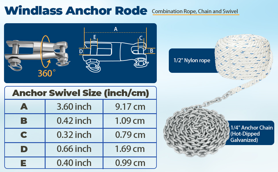 Combination Windlasses Rode - Rope/Chain/Swivel, Designed for Use with Windlasses: Compatible with a wide range of marine windlass brands that accept 3-strand nylon rope. To determine your required chain and rope size, refer to your windlass manual