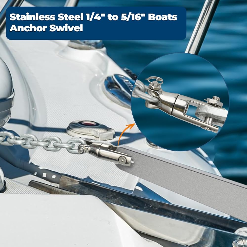 Stainless Steel Anchor Chain Swivel: This swivel ensures secure and efficient anchoring by allowing chain rotation and preventing tangles and twists in the anchor rope. It can be installed in minutes and provides a secure connection