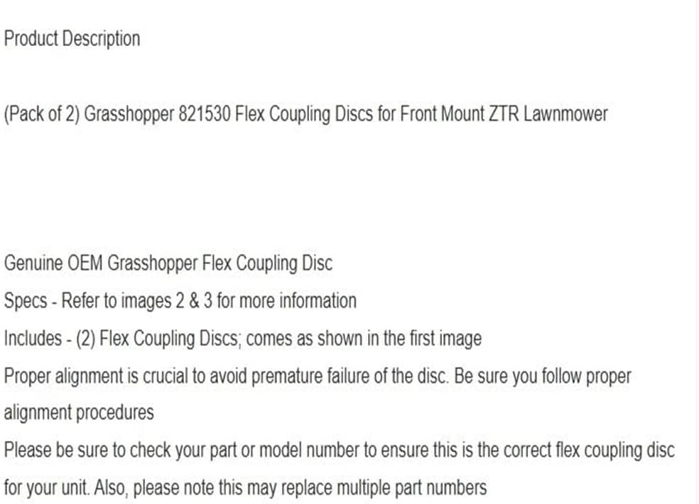 - Replacement for Grasshopper (Pack of 2) 821530 Flex Coupling Discs for Front Mount ZTR Lawnmower OEM
