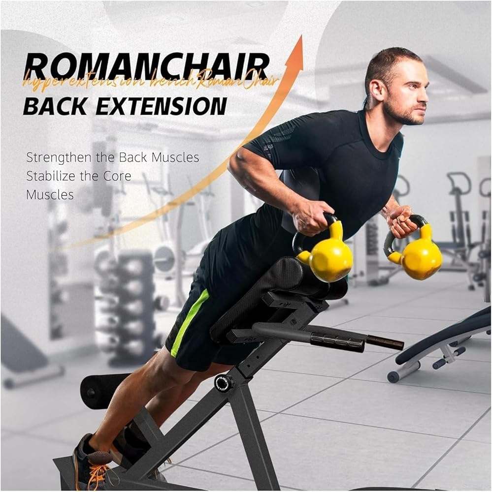 Sturdy Construction: Built from strong materials, the Roman Chair Hyperextension Bench provides stability during workouts. This ensures that you can perform exercises safely and effectively