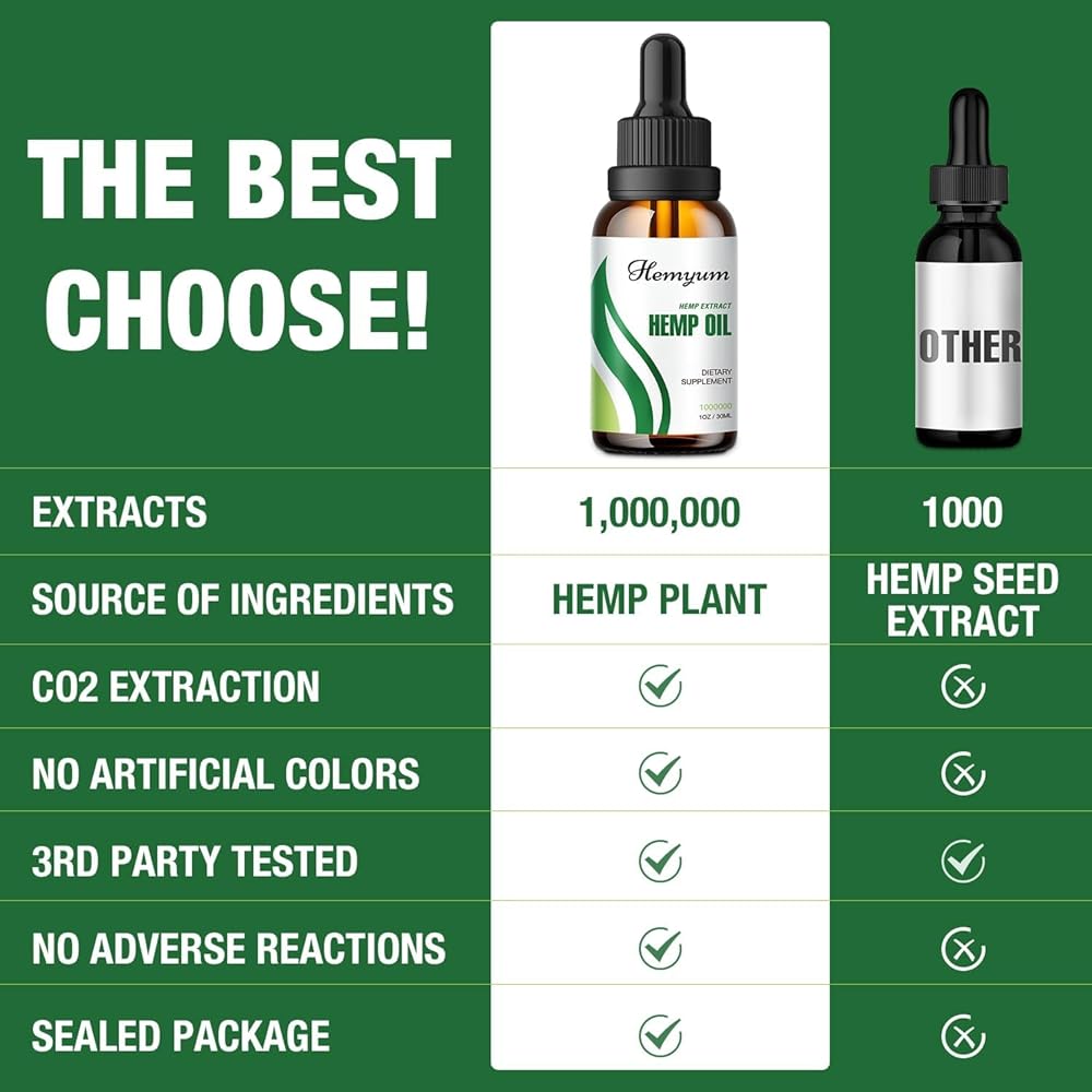 NATURAL EXTRACTS: Every drop hemp oil of Hemyum is packed with pure natural hemp extract which celected from US Colorado, All ingredients in the product are carefully selected to ensure purity and potency. Premium quality efficiently satisfying your needs.
