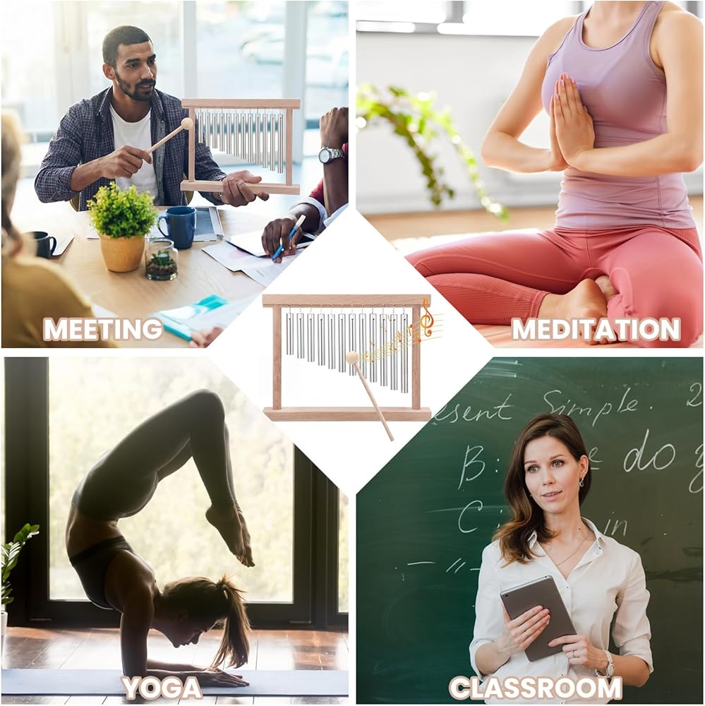 The classroom wind chimes Iis crafted with a solid cherry wood frame and aluminum alloy tone, this chime is both refined and sturdy. It resists fading, warping, and wear—built to last through daily use.