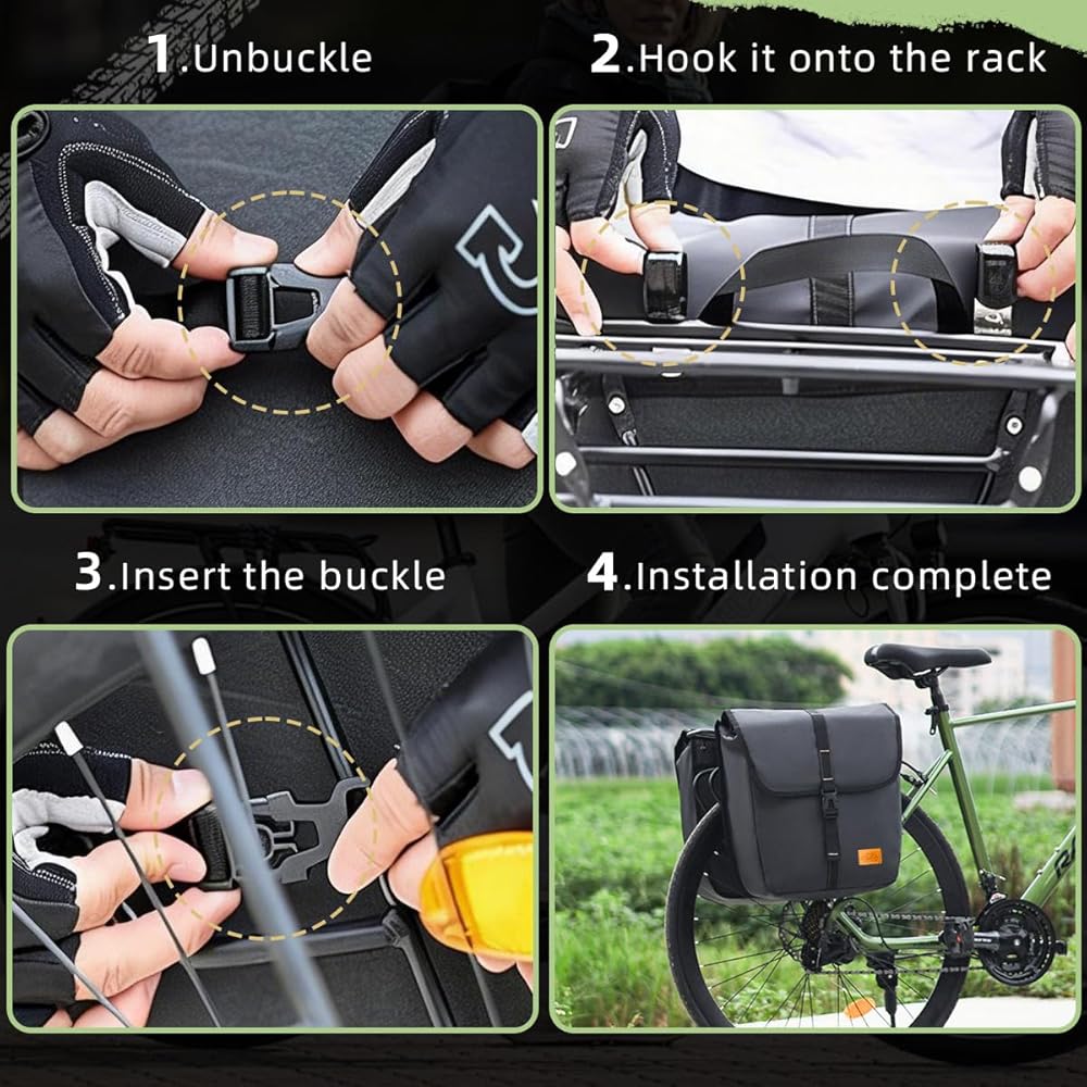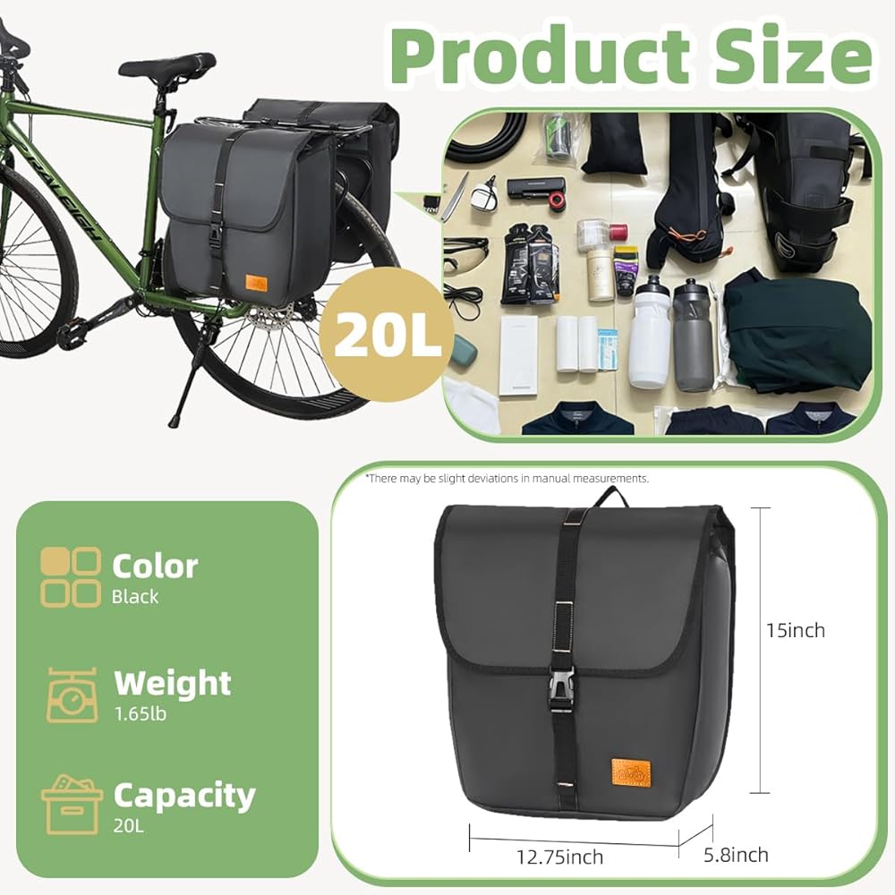 【Super Large Capacity】About 20L large capacity rear bicycle bag, easily storing your cycling towel, water bottle, repair kit, and more. Ideal for commuting to work, school, outdoor cycling, and daily use.
