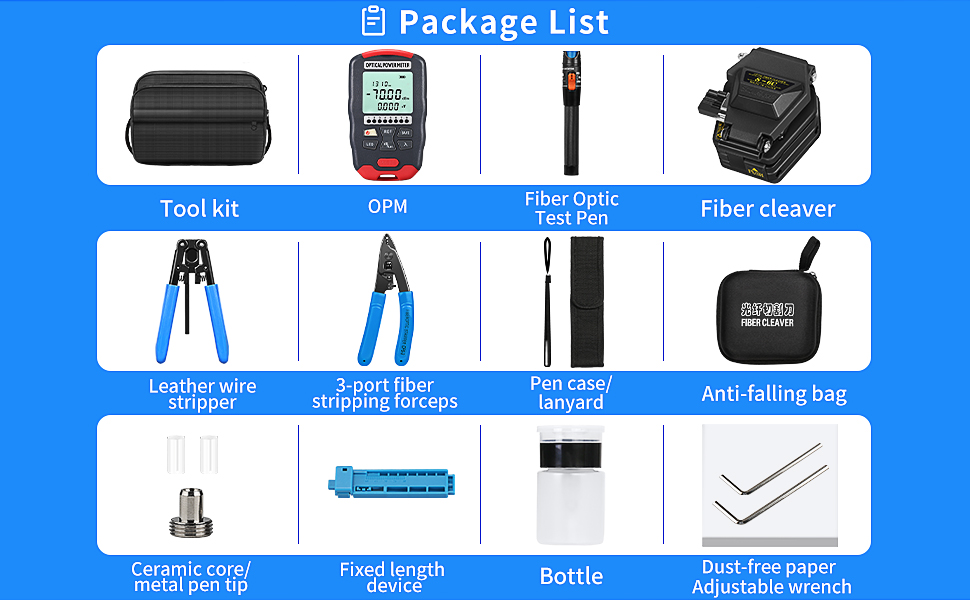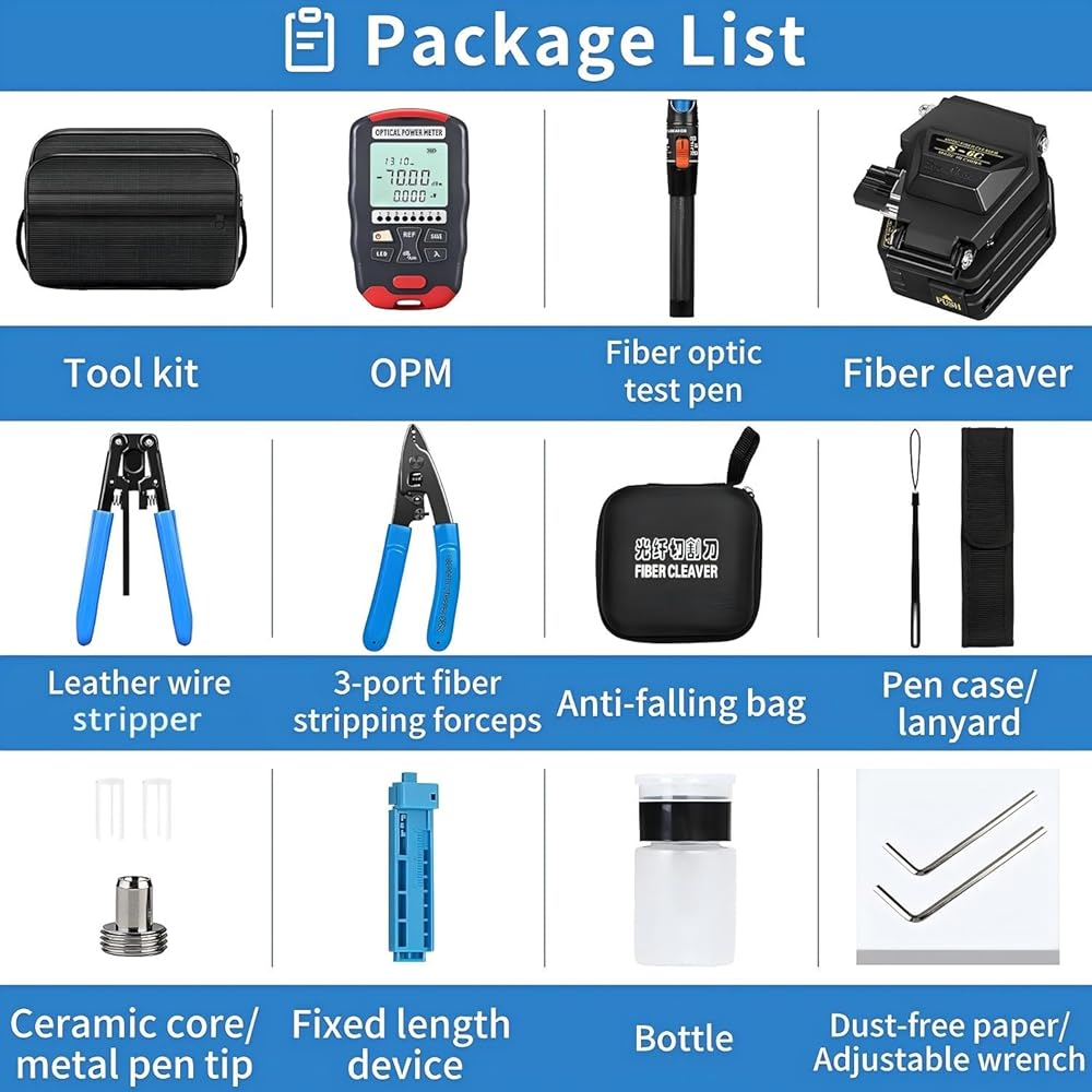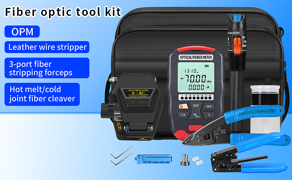 【مجموعة متعددة الوظائف لتشغيل الألياف الضوئية】تشتمل هذه المجموعة الشاملة من الأدوات على: عداد الطاقة الضوئية، وساطور الألياف الضوئية، وقلم اختبار الألياف 15، ومزيل الأسلاك، وكماشة التقشير. توفر هذه المجموعة حلاً كاملاً وجاهزًا للاستخدام لتركيب وصيانة شبكات الألياف الضوئية.