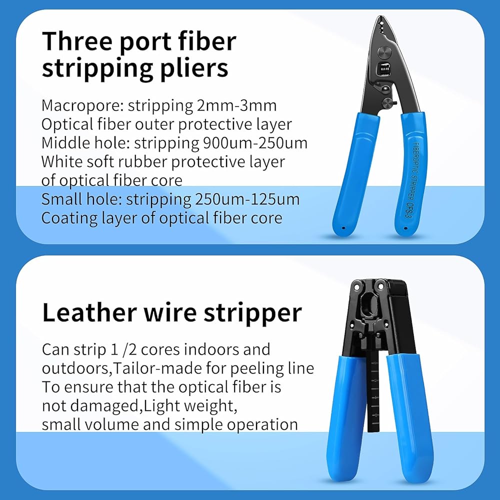 【مقبض مزدوج للألياف لسهولة تقشير الألياف】أتقن مهمة التقشير باستخدام اثنين من أدوات تقشير الألياف. يمكن لمزيل الألياف إزالة طبقات 900 ميكرومتر بأمان، ويمكن لمزيل الألياف التعامل مع الألياف المخزنة بإحكام والكابلات المدرعة بقطر 2-3 مم. يمكن لهذا المزيج حماية الألياف الضوئية الحساسة من التلف أثناء عملية التحضير.
