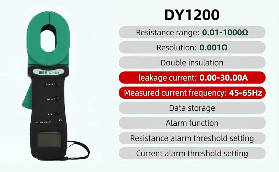 - يتراوح نطاق تيار تسرب التيار المتردد من 10 مللي أمبير إلى 30.00 أمبير بدقة 50 ميكرو أمبير