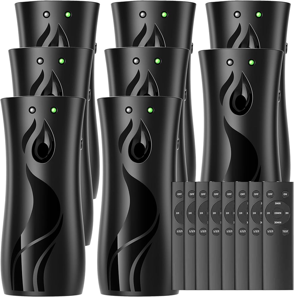 Elevate your home or office's ambiance with this 8-pack of automatic air freshener spray dispensers. Designed for versatile placement, these dispensers can be wall-mounted or freestanding, making them ideal for bathrooms, living rooms, offices, and commercial spaces. With multiple time settings, you can customize the fragrance release to suit your preferences. Enjoy a consistently fresh and inviting atmosphere without the hassle of manual spraying. Effortlessly enhance your surroundings with this convenient and practical solution