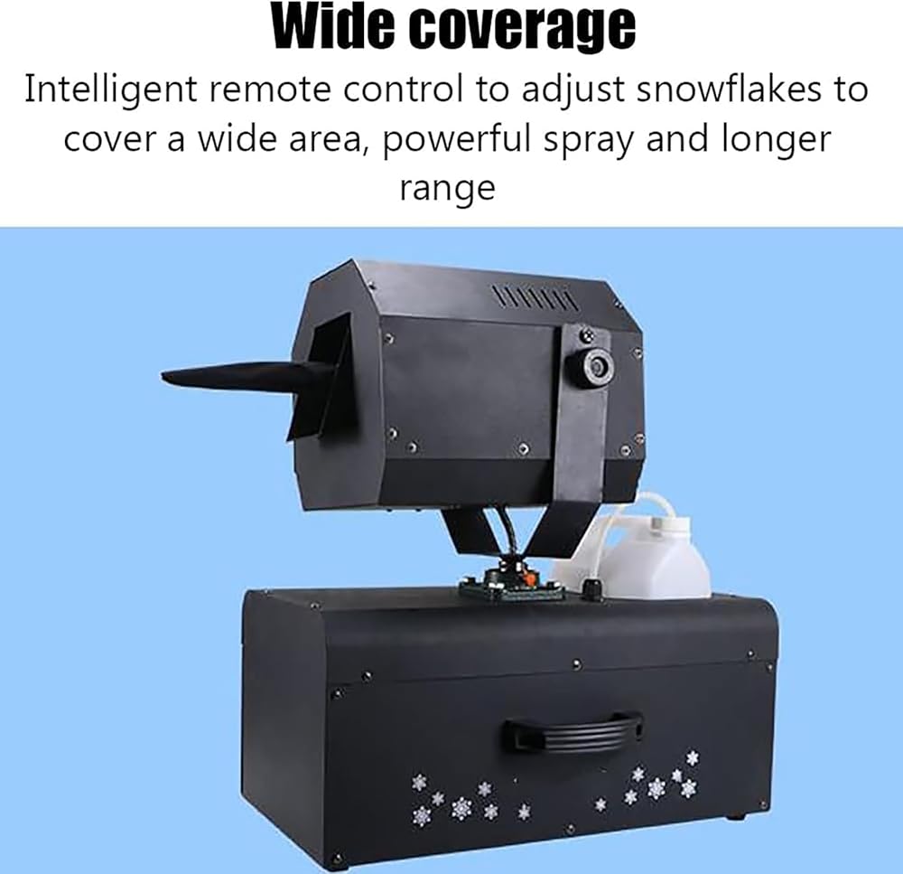 【2 Control Methods】: Large-capacity snowflake oil tank, spraying snowflakes for longer time. Two control methods, wired control and remote control, Snowflakes can be adjusted in size to adapt to different scenes.