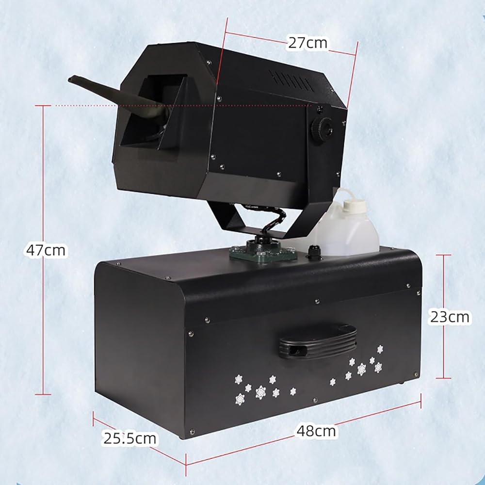 【2000W Snow Make Machine】: This is a sturdy, high-pressure, and large-output snow machine that can produce a lot of snow, 10~15m spray distance, 50-80㎡ covering area, sturdy and durable.