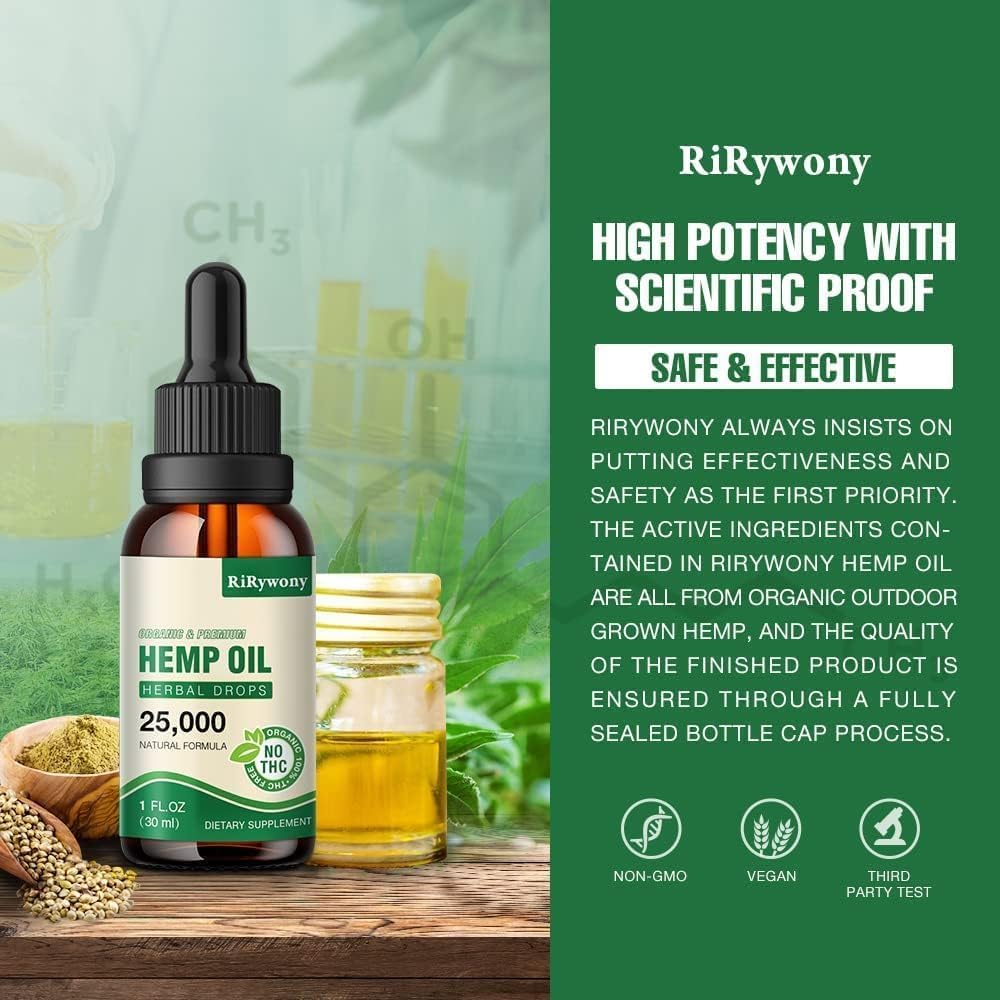 Quality Assurance, a Trustworthy Choice:We care about your health. Every bottle of RiRywony Health Hemp Oil has been strictly tested and certified by a third party to ensure its safety and effectiveness, enabling you to enjoy the gifts of nature with peace of mind.