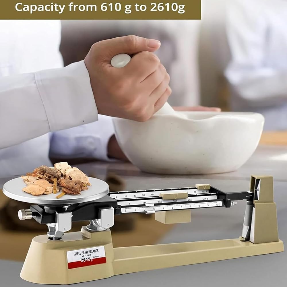 【Professional Mechanical Balance Scale】: Designed with an accuracy of 0.1 gram, the scale has a weighing range of 0.1g-2610g, comes with weights to ensure precision and repeatability, and includes a zero knob to reset the scale before each measurement, minimizing errors and ensuring accurate data display.