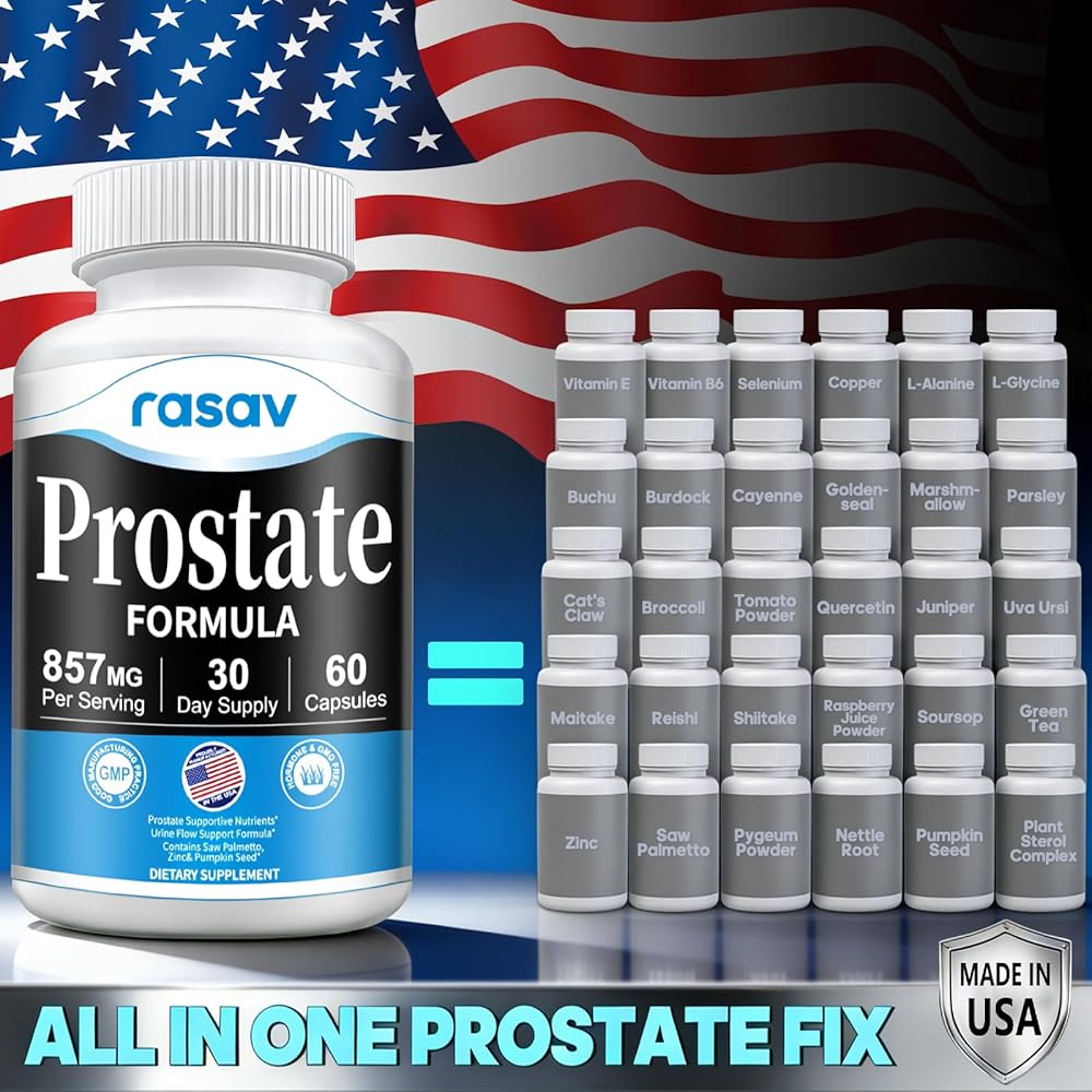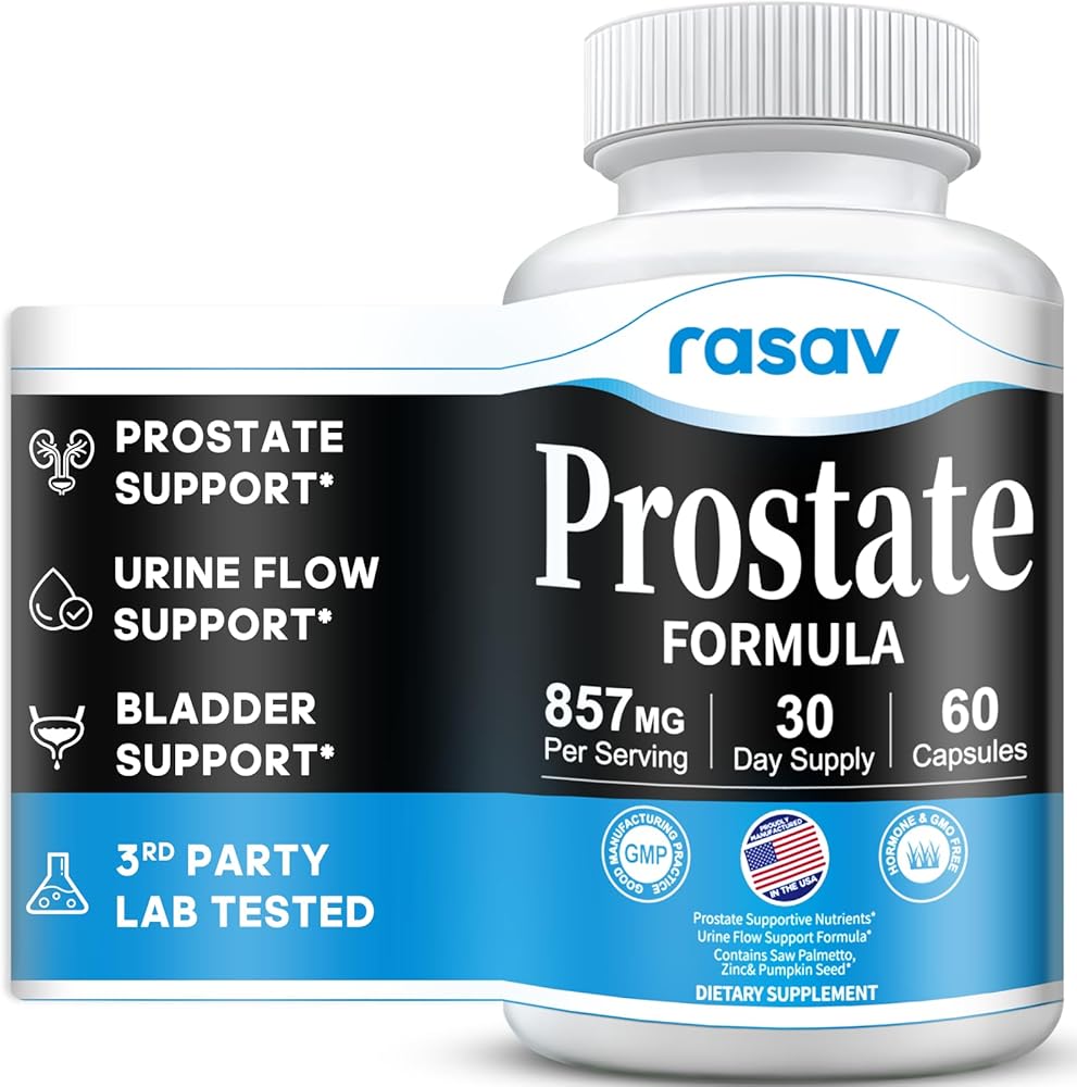 راساف مكمل صحة البروستاتا للرجال مع البلميط المنشاري والبيجيوم والقراص وبذور اليقطين، مانع DHT - يساعد على دعم صحة المسالك البولية ووظيفة البروستاتا، 60 كبسولة