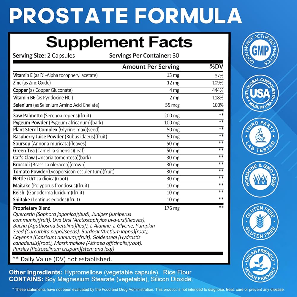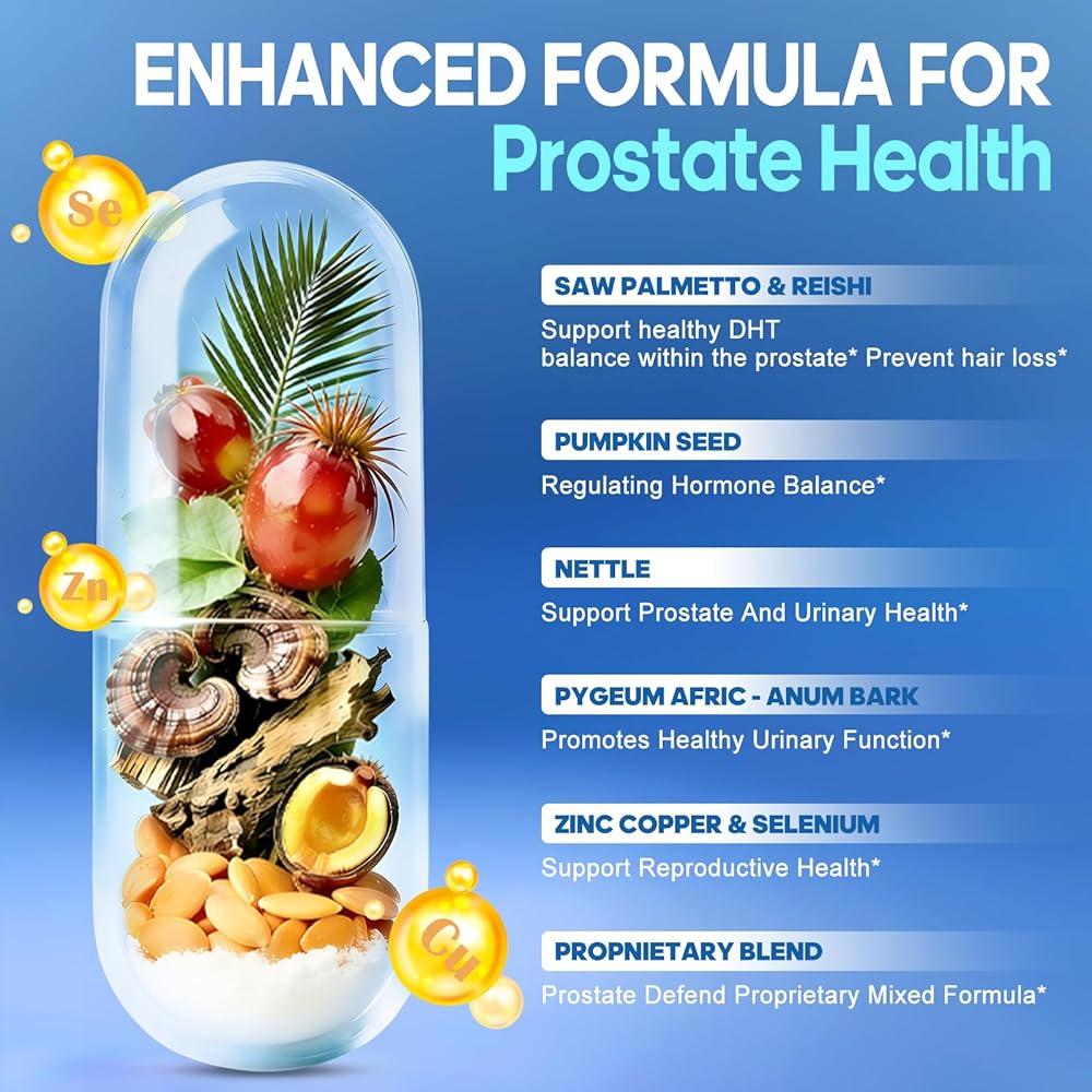 تقلل من رحلات الحمام الليلية: تحتوي تركيبة البروستاتا هذه على مكملات بالميتو المنشارية للرجال وجذور نبات القراص وبذور اليقطين. مصمم لدعم الصحة الروتينية للرجال بمزيج من المكملات العشبية. يساعد على تقليل التبول الليلي المتكرر، ويعزز النوم المريح دون إزعاج.
