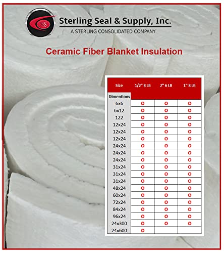 Ceramic Fiber Blanket, High-Purity Grade, 8 pound density, 1" inch thick, SIZE is 24" x 24" inch Squares (2 ea. included). What is Ceramic Fiber Blanket? Ceramic Fiber Blankets supplied by Sterling Seal & Supply are manufactured from spun TaoFibre Ceramic fiber and is needled to provide exceptional handling strength for high temperature insulation applications. Blanket is typically offered in three standard grades referred to as commercial, High-Purity, and Zirconia grade. This listing is High-Purity Grade. All grades are lightweight and thermally efficient resulting in a material that has the advantage of low heat storage and complete resistance to thermal shock. Blanket is produced in varying dimensions, temperature ratings, and for different applications. A Ceramic Fiber Blanket is ideal to use when working with outdoor pizza ovens, furnaces, boilers, nuclear insulation and high temperature pipe insulations. Ceramic Fiber Blankets supplied by Sterling Seal & Supply have excellent insulating properties, low thermal conductivity, excellent thermal shock resistance, low heat storage capacity & inorganic (smoke free). Used in furnace kiln, reformer and boiler lining, laboratory ovens, furnace door lining and seals, furnace repair, annealing furnace linings, investment casting mold wrap, stress–relieving blankets, reusable steam and gas turbine insulation, expansion joints packing, high temperature gaskets, fire protection & acoustical service. Blanket must be cut with a sharp utility knife for proper fit Adaptable, trim, mold, and shape to fit a variety or forms and shapes.