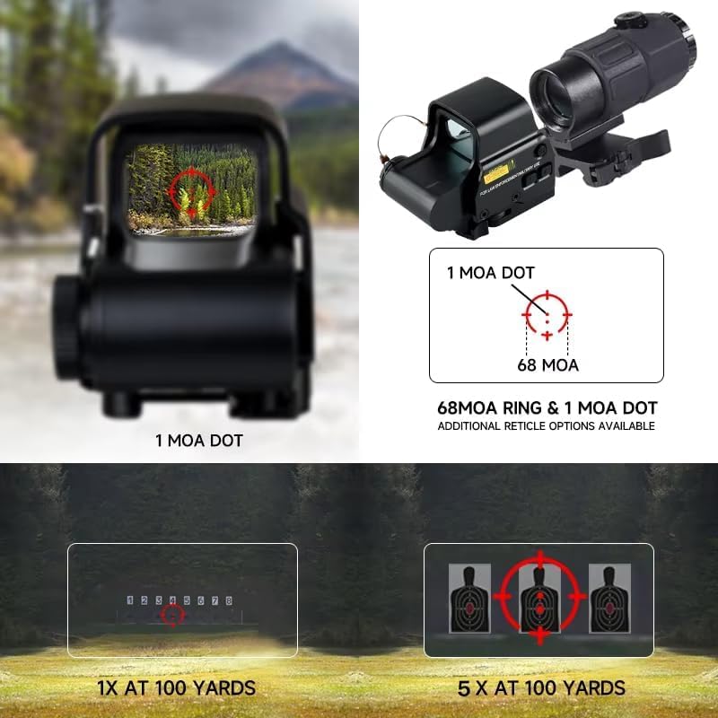 يُعد المشهد الهجين المجسم سريع التحديد ومجموعة العدسة المكبرة 5x مثالية للرماة الذين يحبون الرماية متوسطة المدى سريعة التصويب أو الصيد متوسط المدى.