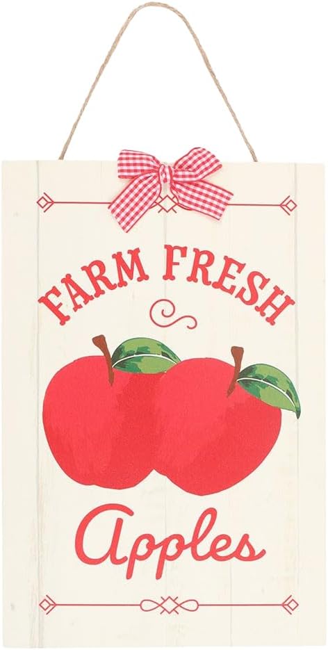 Material: MDF. Design: Apple, Bow, Text. Height: 30cm. Width: 20cm. Packaging: Bubble Wrapping, Hang Tag. Hanging String.