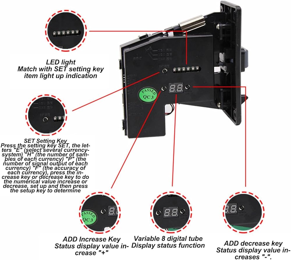 6 أنواع من وحدات المعالجة المركزية الدايم متعددة الدايم مع وظيفة الذاكرة وزر استرداد الأموال لآلات البيع والألعاب، وفتحة الدايم الذكية من سبائك الزنك للمعدات الآلية