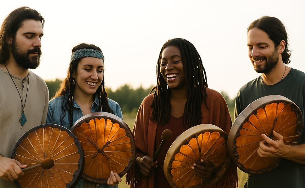 MULTIPLE SIZES AND CONSISTENT DEPTH: Available in various sizes 24 inches, 26 inches and 28 inches. Each drum maintains a uniform depth of 3 Inches, ensuring consistent resonance and tone across all variations. This standardized design allows for seamless integration into musical ensembles or ceremonial settings, whether accompanying a handpan drum or a bass drum.
