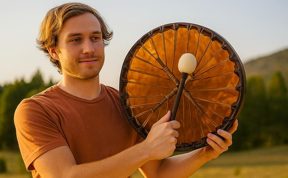HANDCRAFTED EXCELLENCE: Meticulously handmade by skilled artisans, each drum carries unique character and craftsmanship. It reflects the maker's dedication and pairs beautifully with other hand drums or Native American clothing in ceremonies.