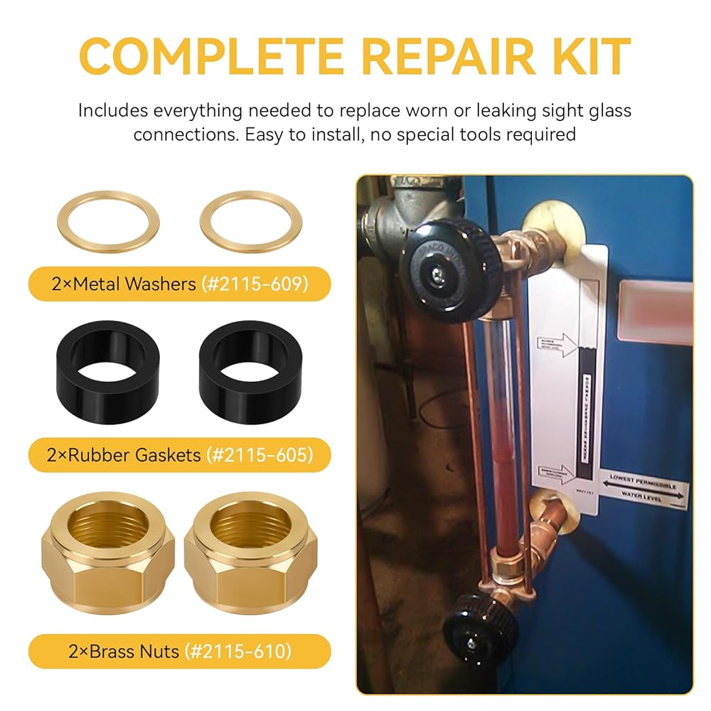 Brass Nuts – Corrosion-resistant and built to last, keeping your sight glass secure and stable.
