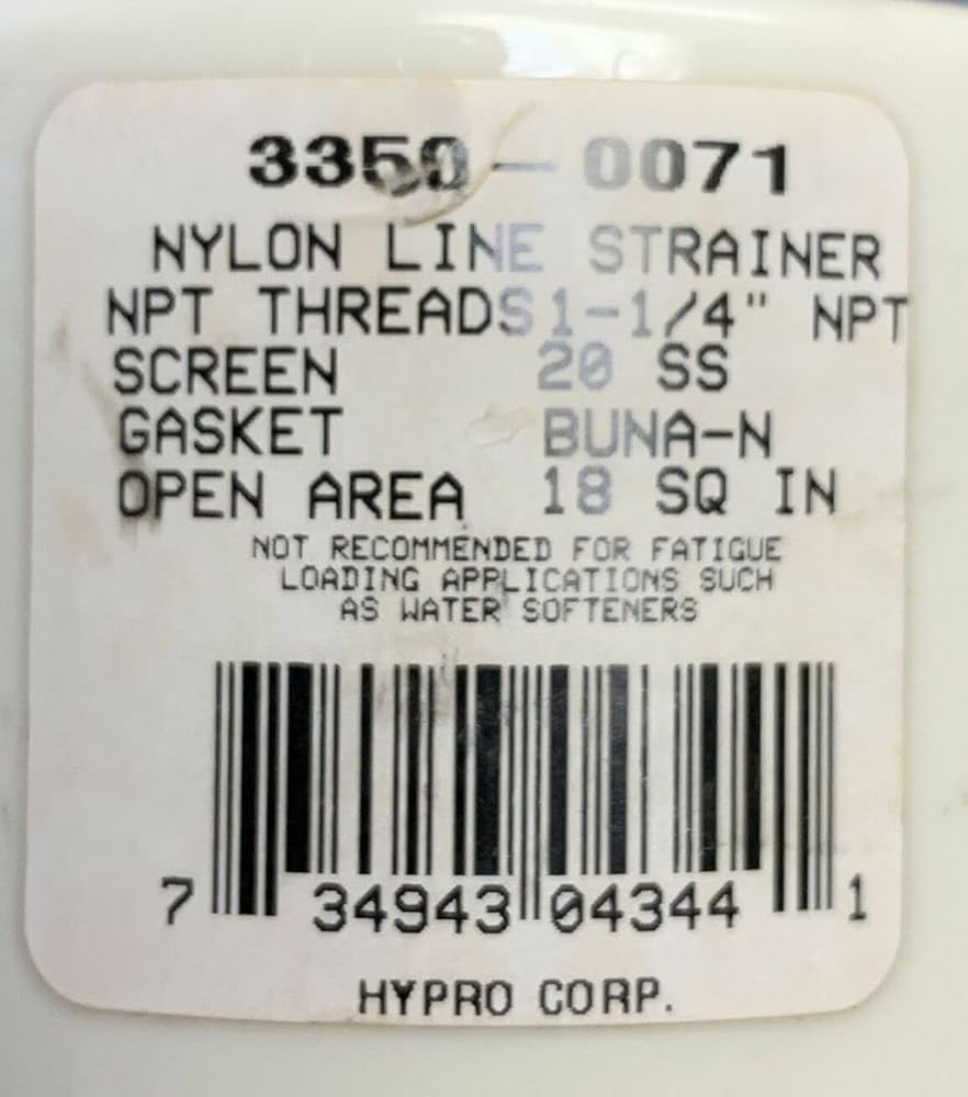 3350-0071 Hypro 1-1/4" Nylon Strainer 20 Mesh With Buna Gasket