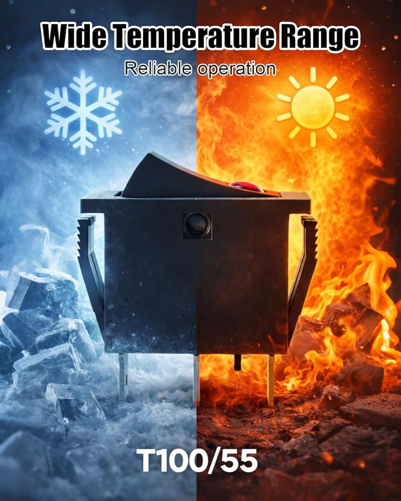 تحكم موثوق في الطاقة: مصمم لدعم ما يصل إلى 16 أمبير عند 125/250 فولت تيار متردد، يحافظ المفتاح المتأرجح RK1-15 على موصلية ثابتة تحت الحمل، مما يقلل من الوميض أو انخفاض الطاقة أو مشاكل الاتصال المتقطعة، ويتطلب معالجة تيار مستقرة في التشغيل اليومي