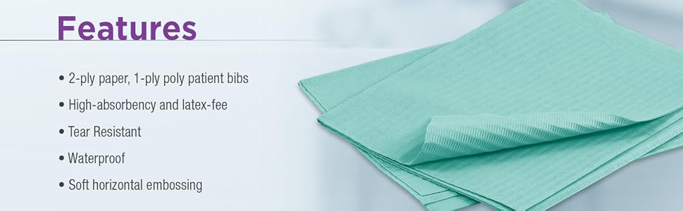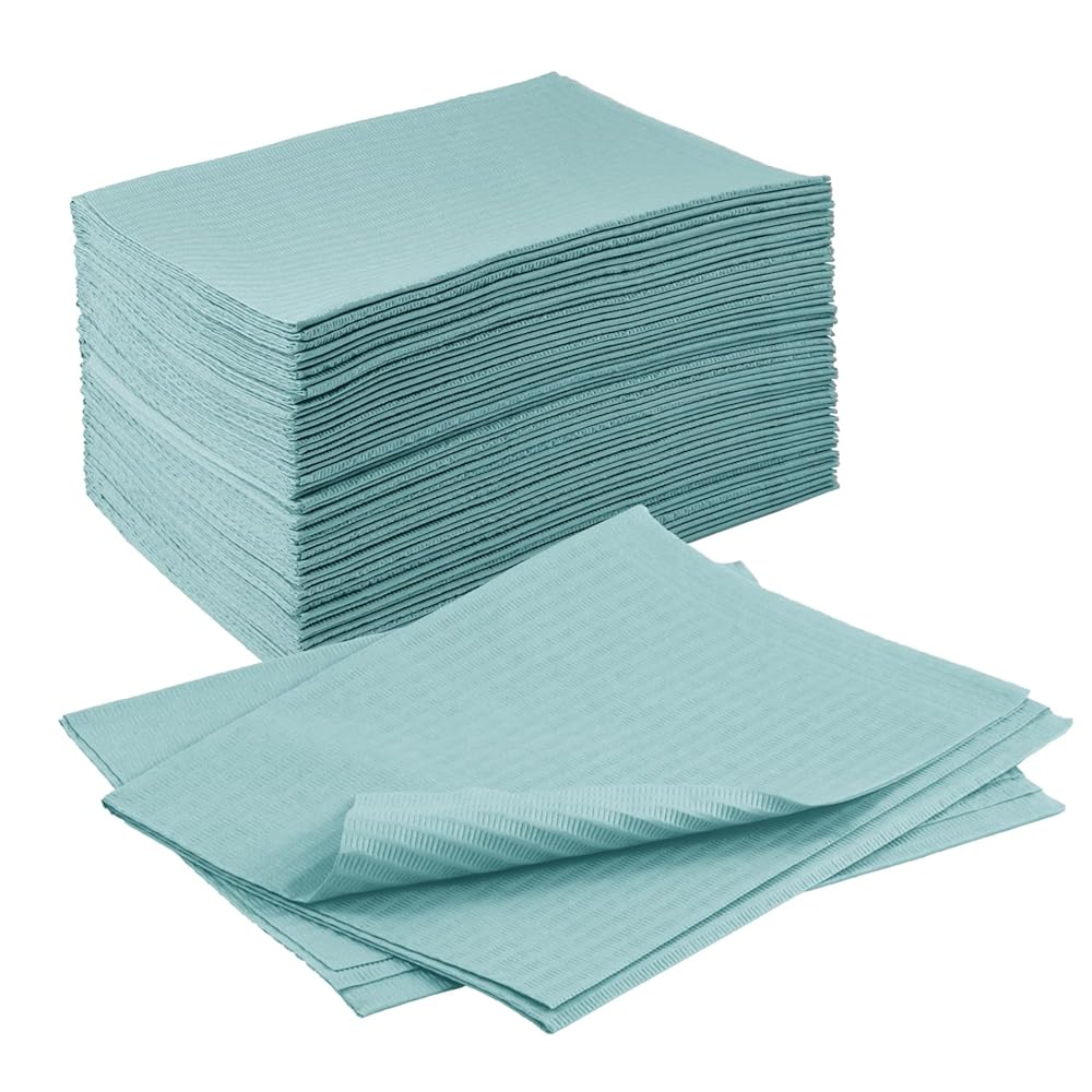 الدرجة الطبية وطب الأسنان - مرايل الأسنان للاستعمال مرة واحدة جاهزة لمكاتب أطباء الأسنان وأطباء تقويم الأسنان. هذه المرايل ذات الحجم الكبير التي تستخدم لمرة واحدة مقاس 33.02 سم × 45.72 سم مثالية للأطفال والبالغين والمرضى من جميع الأنواع، حيث توفر تغطية فعالة وراحة واسعة.