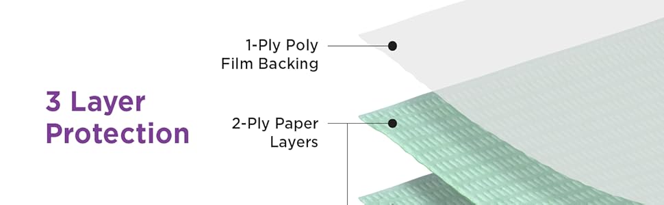 WATER-RESISTANT & ABSORBENT - Absorbs body fluids, blood, and ink to keep the environment sanitary & hygienic. يضيف فيلم البوليستر طبقة مقاومة للماء مع نقش أفقي يساعد على منع انتشار السوائل والسوائل على الملابس أو الأسطح.