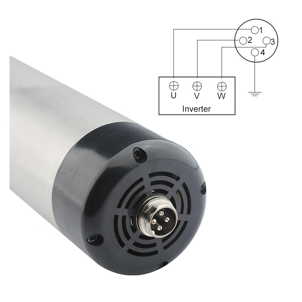 The air plugs are labeled "1", "2", "3", and "4". "1", "2", and "3" are connected to the inverter (U, V, W), and 4 is connected to the inverter.
