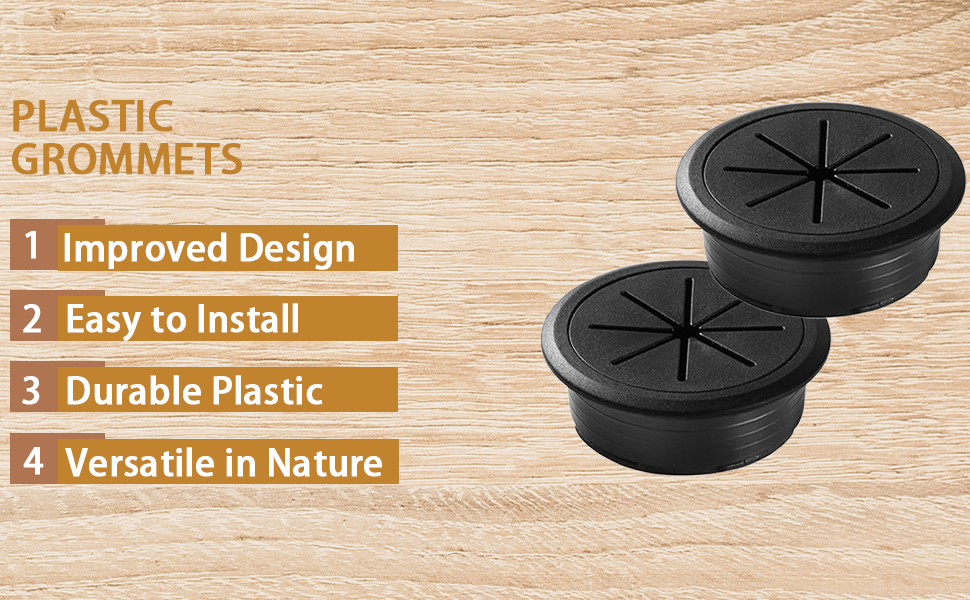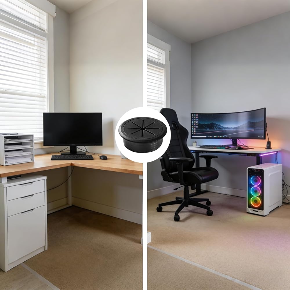 CLEAN UP YOUR WORKSPACE: Say goodbye to tangled cords! These wire hole plugs are the ideal solution for organizing cables on office desks, PC gaming setups, TV stands, entertainment centers, computer workstations, and kitchen countertops. Keep your space neat and hazard-free.