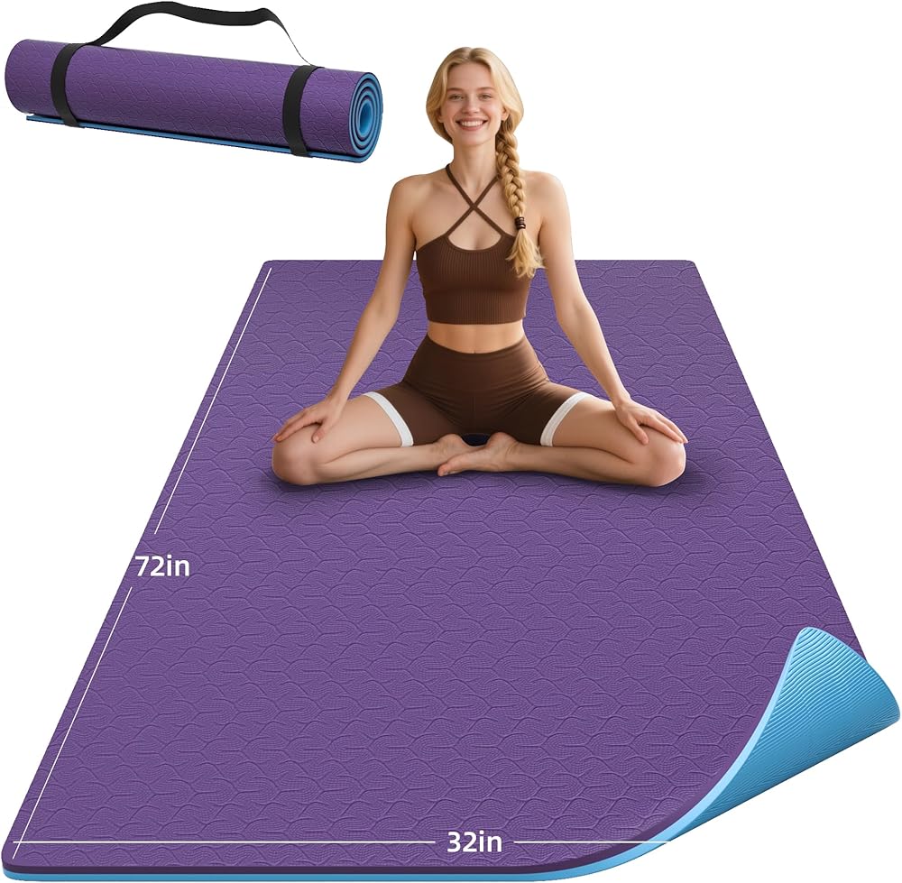 Measuring an expansive 72" L x 32" W, this large yoga mat provides ample space for unrestricted movement, making it ideal for all body types and dynamic routines. With a thick yoga mat design at 0.4" , it delivers optimal cushioning to support joints during high-impact sessions while maintaining optimal balance—thick enough for support yet lightweight for effortless portability.