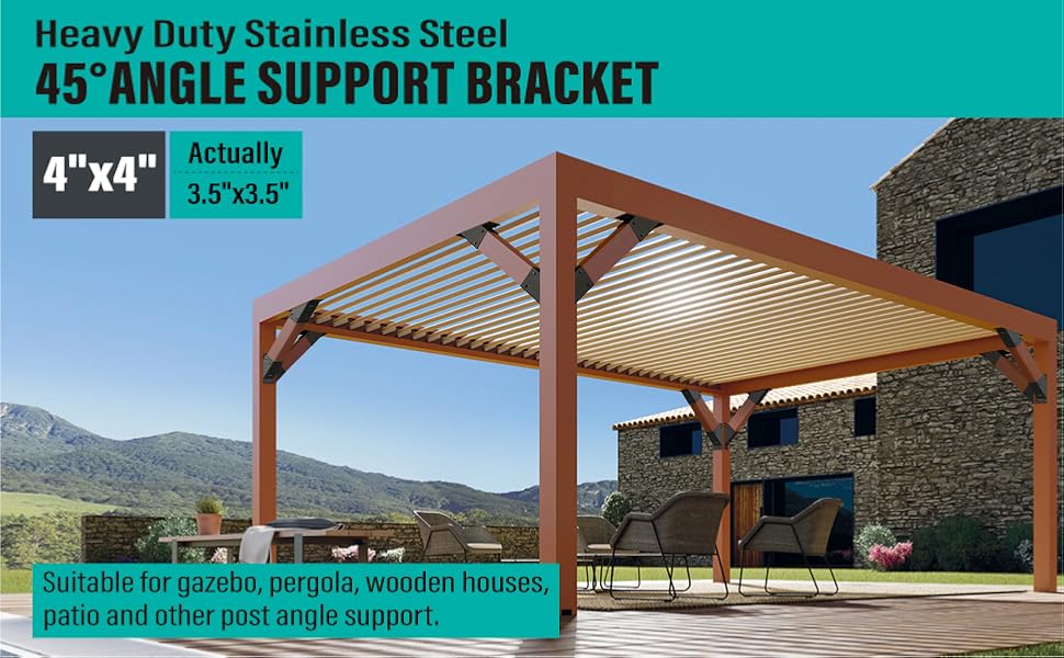 المواد، الحجم: دعامة دعم 45 درجة من الفولاذ المقاوم للصدأ السميك، طلاء الخبز الخاص في الهواء الطلق بحبيبات الرمل الأسود غير اللامع بالكامل، مع خصائص مقاومة للرطوبة والشمس في نفس الوقت، بحيث تكون العريشة ككل أكثر توحيدًا وجمال الغلاف الجوي؛ مناسبة لتركيب روافد خشبية قياسية 4 × 4 (3.5 × 3.5 بوصة) ؛ الطول 8.2 × العرض 1.75 × الارتفاع 4؛ الكمية: 4 عبوات