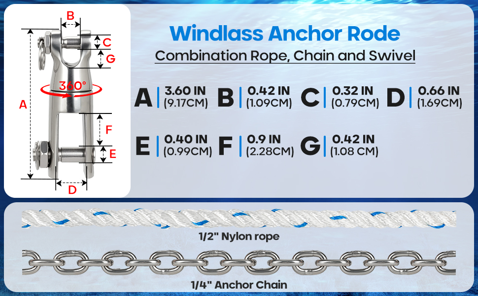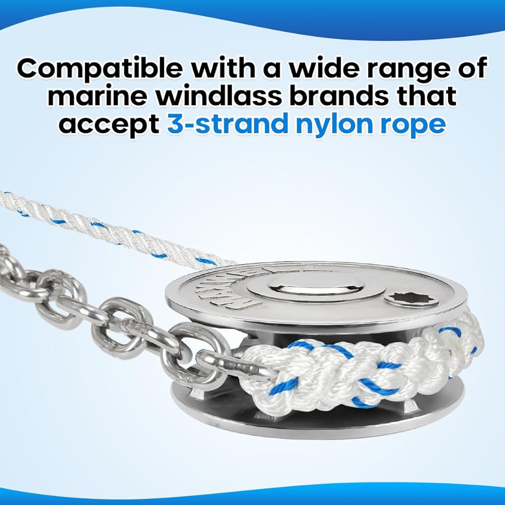 Combination Rope/Chain/Swivel Windlasses Rode, Designed for Use with Windlasses: Compatible with a wide range of marine windlass brands that accept 3-strand nylon rope. To determine your required chain and rope size, refer to your windlass manual