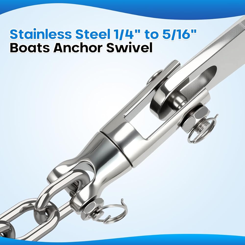 Anchor Chain Swivel: This swivel ensures secure and efficient anchoring by allowing chain rotation and preventing tangles and twists in the anchor rope. It can be installed in minutes and provides a secure connection