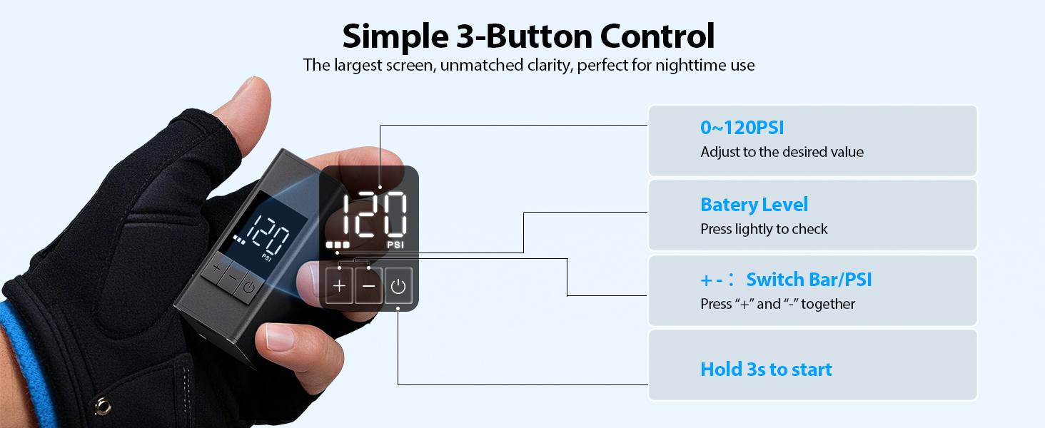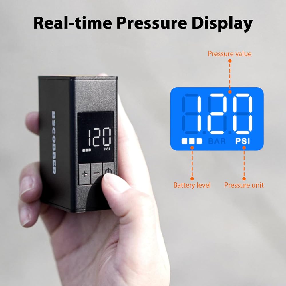 • 【تقنية الإيقاف التلقائي الذكية الذكية】تخلص من التخمين بشأن ضغط الإطارات. تتميز مضخة الدراجة الذكية هذه بمستشعر رقمي عالي الدقة، وتتميز بوظيفة الإغلاق التلقائي التي تتوقف بدقة عند الوصول إلى الضغط المحدد مسبقًا. مع ثلاثة أوضاع بديهية معدة مسبقًا، يمنع النفخ الزائد، مما يضمن أن تكون إطاراتك دائمًا عند PSI الأمثل للسلامة والسرعة.