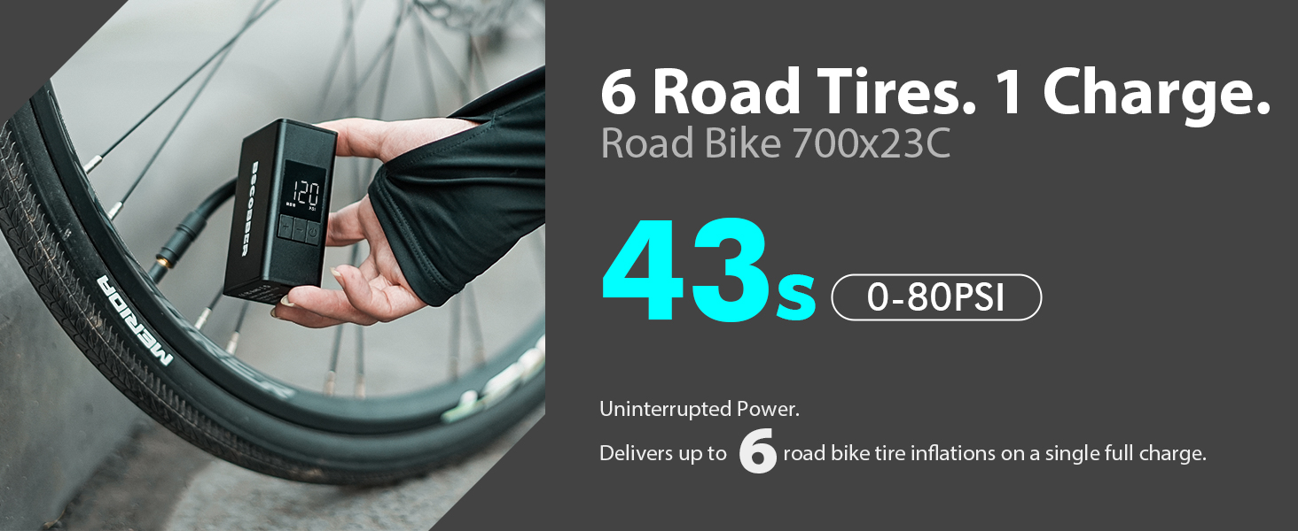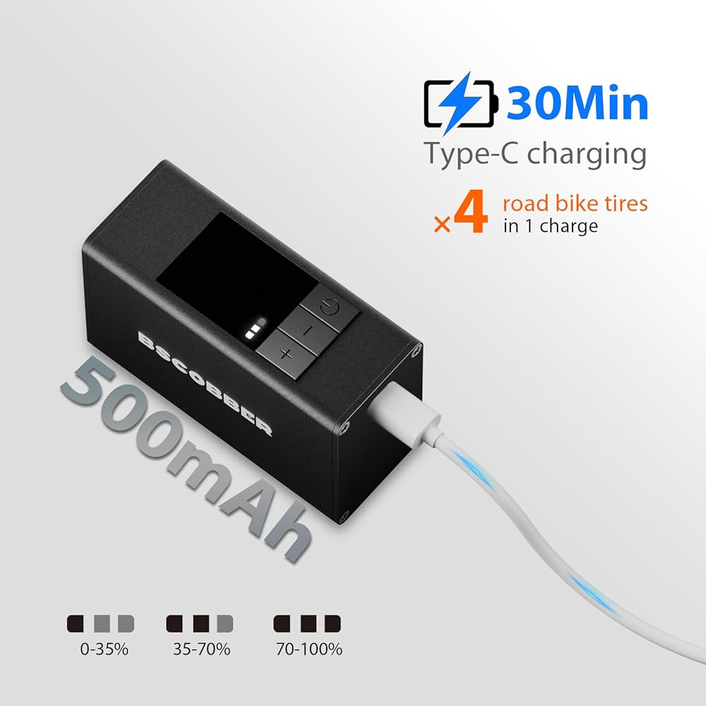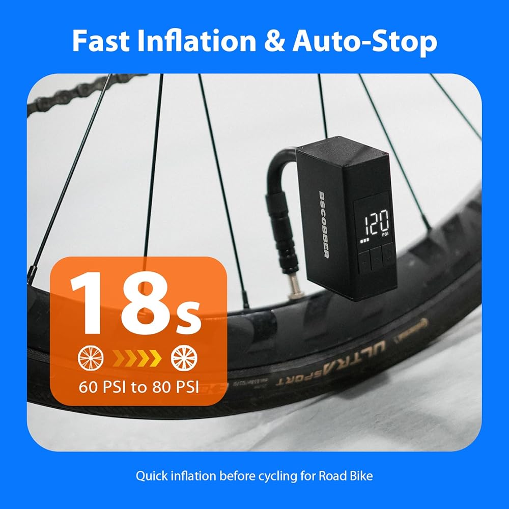 • 【تضخم سريع 120 رطل لكل بوصة مربعة للطرق وMTB】لماذا تعاني من الضخ اليدوي؟ توفر مضخة إطارات الدراجة الكهربائية A3S أقصى ضغط قوي يبلغ 120 رطل لكل بوصة مربعة، وهي قادرة على نفخ إطار دراجة الطريق القياسي إلى 100 رطل لكل بوصة مربعة في 90 ثانية فقط. هذا الأداء عالي الكفاءة يجعله منفاخ الدراجة السريع المثالي لركوب الدراجات على الطرق وركوب الدراجات الجبلية (MTB) والتنقل اليومي، مما يقلل بشكل كبير من الجهد البدني أثناء الركوب.