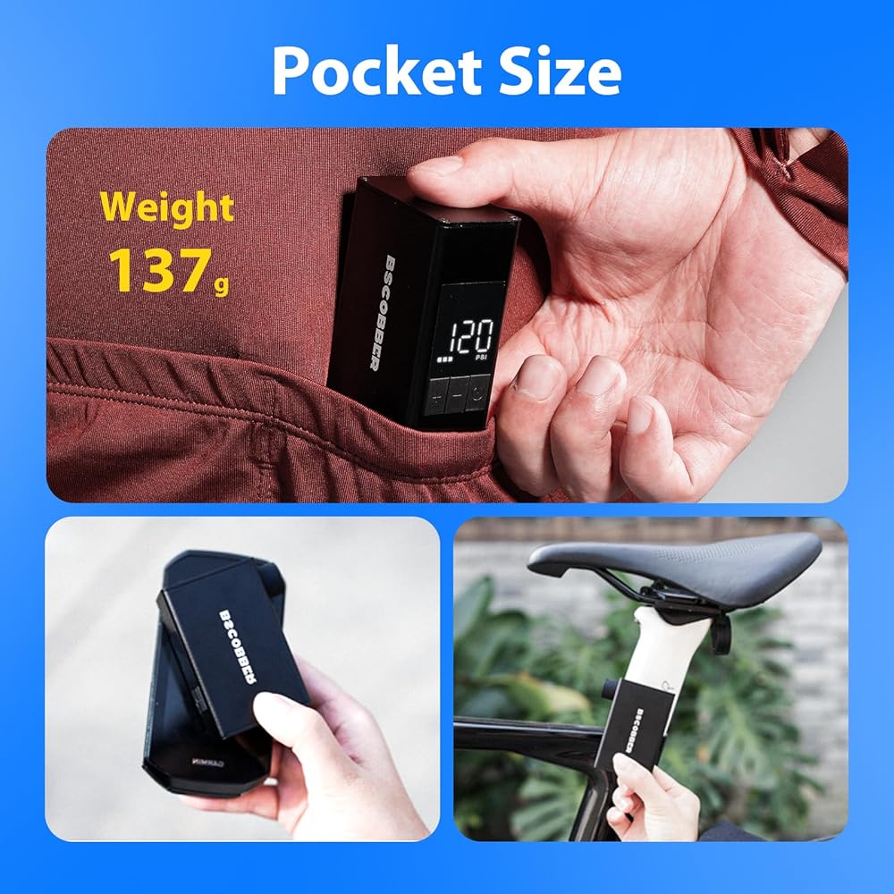 • 【تصميم خفيف الوزن للغاية 137 جرامًا بحجم الجيب】تم تصميم مضخة الهواء الكهربائية الصغيرة هذه خصيصًا لراكبي الدراجات البسيطين، وتزن 137 جرامًا فقط (4.8 أونصة). يتناسب إطارها المدمج والأنيق بشكل مثالي مع جيب جيرسي لركوب الدراجات أو حقيبة السرج أو قفص زجاجة المياه. إنه منفاخ الدراجات المحمول المثالي لتعبئة الدراجات لمسافات طويلة وإصلاحات الطوارئ على جانب الطريق، واستبدال خراطيش ثاني أكسيد الكربون الضخمة.