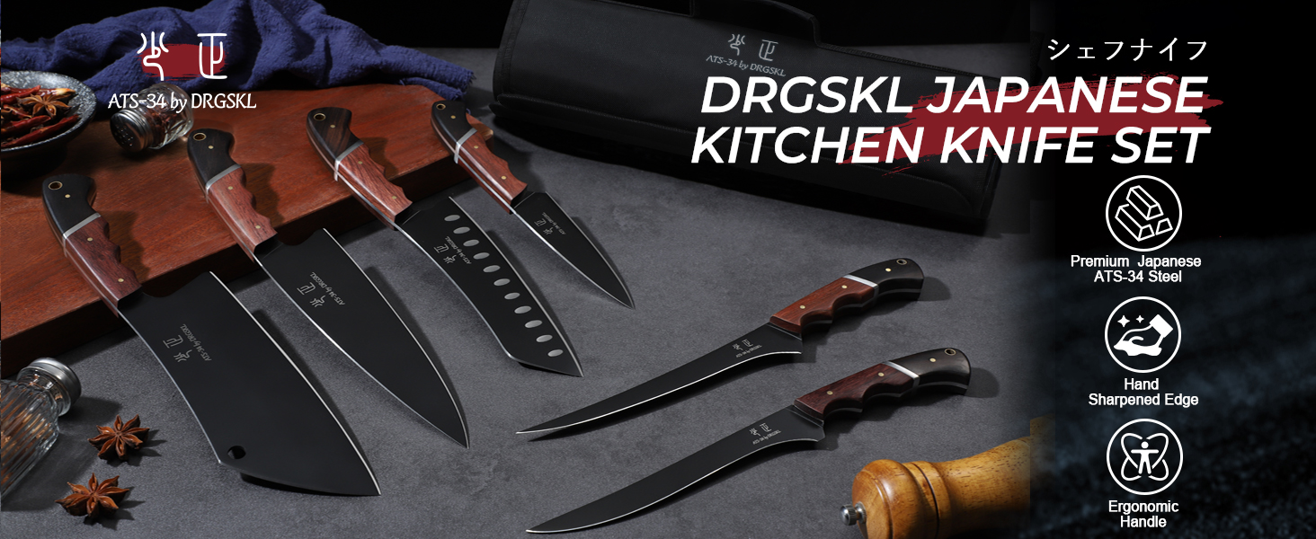 ATS-34 Steel – Forged with Traditional Japanese Precision.This kitchen knife set is forged using time-honored Japanese craftsmanship and premium ATS-34 steel, a high-carbon steel known for its hardness and fine grain. Sharpened through a multi-stage wet grinding process—(Mizukensaku)—the edge achieves superior precision. This meticulous hand-forging reflects the spirit of Japanese blade-making, where durability meets refined artistry.