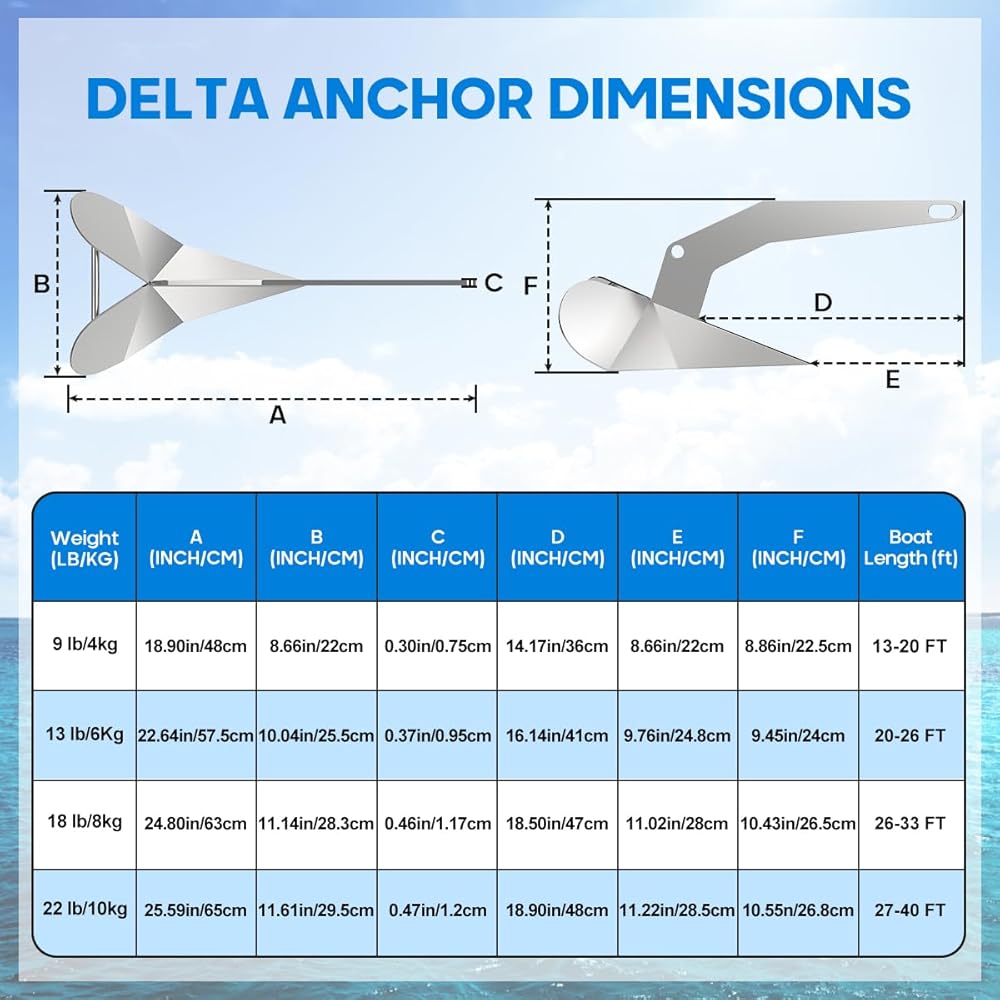 تطبيق واسع: سواء كنت تمتلك عوامة أو وحدة تحكم مركزية أو قارب سطحي أو مركب شراعي، فإن نظام التثبيت هذا على طراز دلتا يضمن قبضة سريعة وقوة تثبيت موثوقة في جميع الظروف السفلية تقريبًا، بما في ذلك الرمل والطين والحصى والصخور والعشب والطين والحصى وعشب البحر والمرجان. رائعة للاستخدام في البحيرات والأنهار والمياه الساحلية